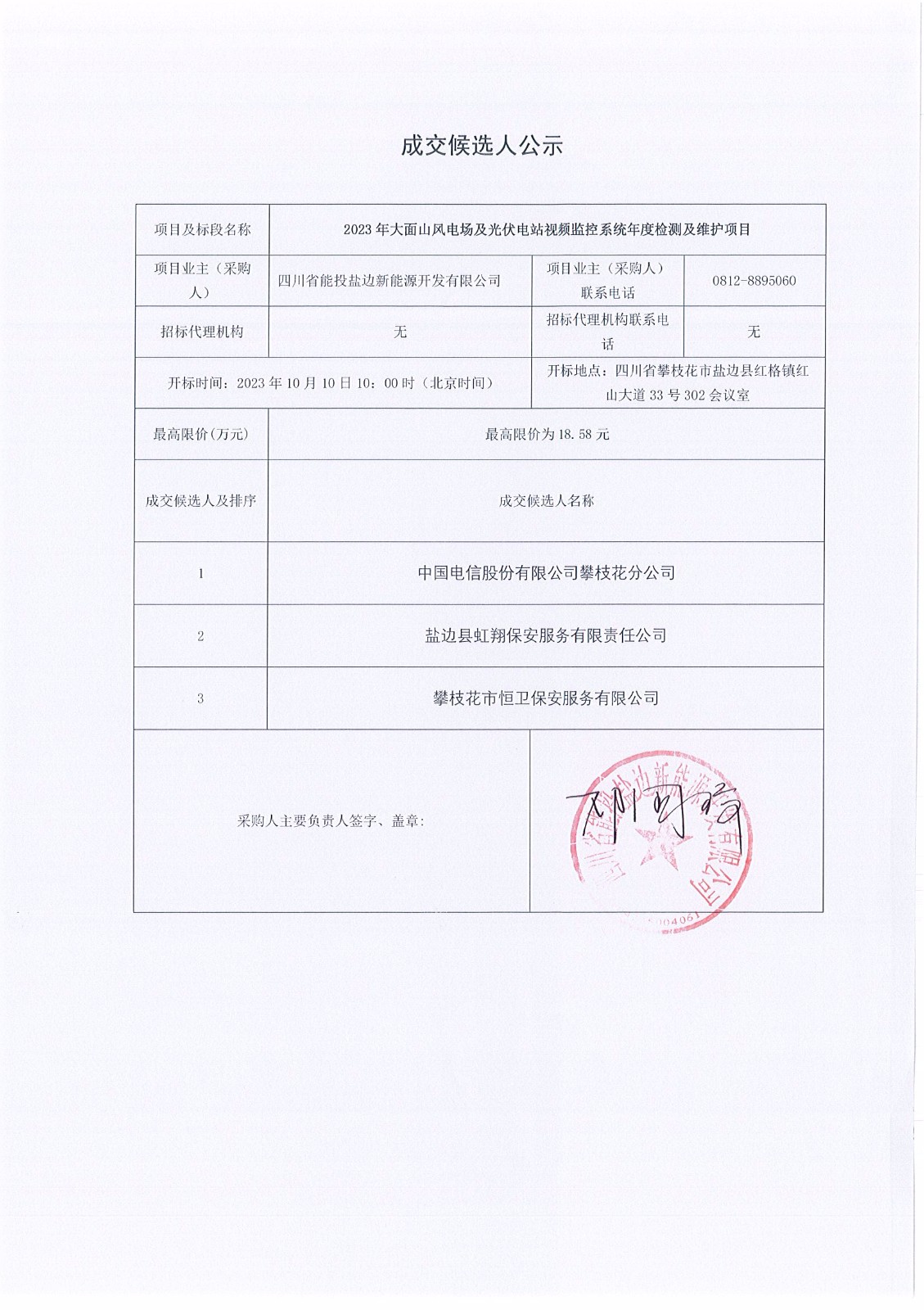 上一条:大面山风电场#1、#2测风塔检修维护项目(第二次)成交候选人公示