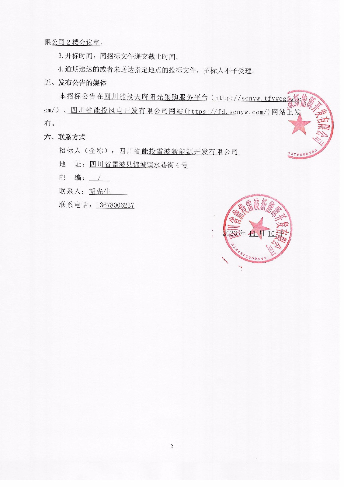 2.投标文件递交地点:四川省凉山州美姑县巴普镇四川省能投雷波新能源开发有限公司2楼会议室。