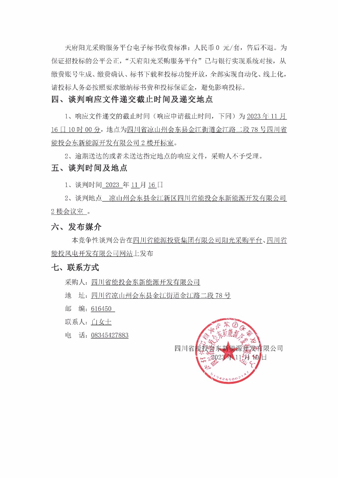 2、谈判地点 凉山州会东县金江新区四川省能投会东新能源开发有限公司2楼会议室 。