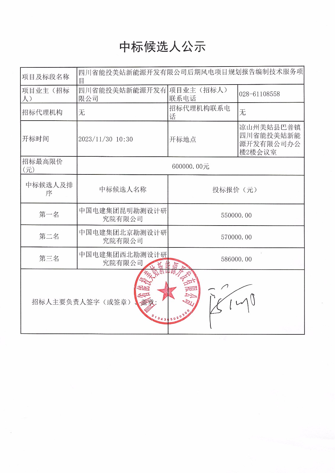 上一条:四川省能投美姑新能源开发有限公司2023年第二批生产物资采购中标候选人公示