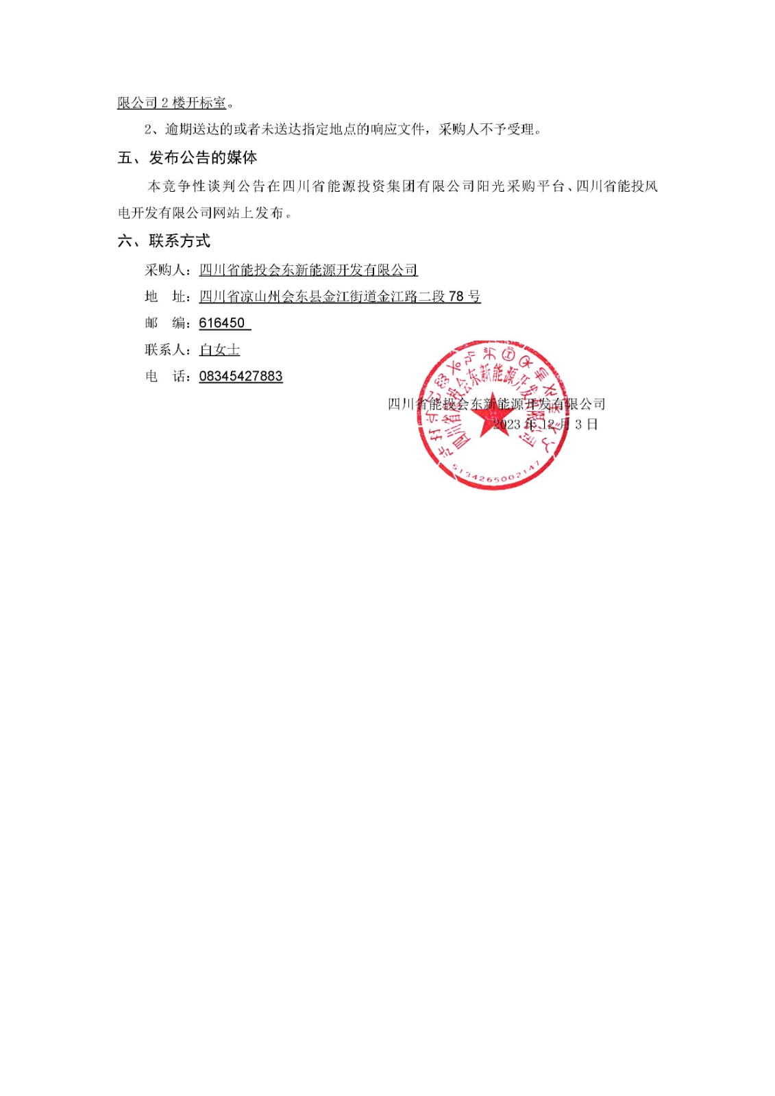 1、响应文件递交的截止时间(响应申请截止时间,下同)为2023年12月7日10时00分,地点为四川省凉山州会东县金江街道金江路二段78号四川省能投会东新能源开发有限公司2楼开标室。