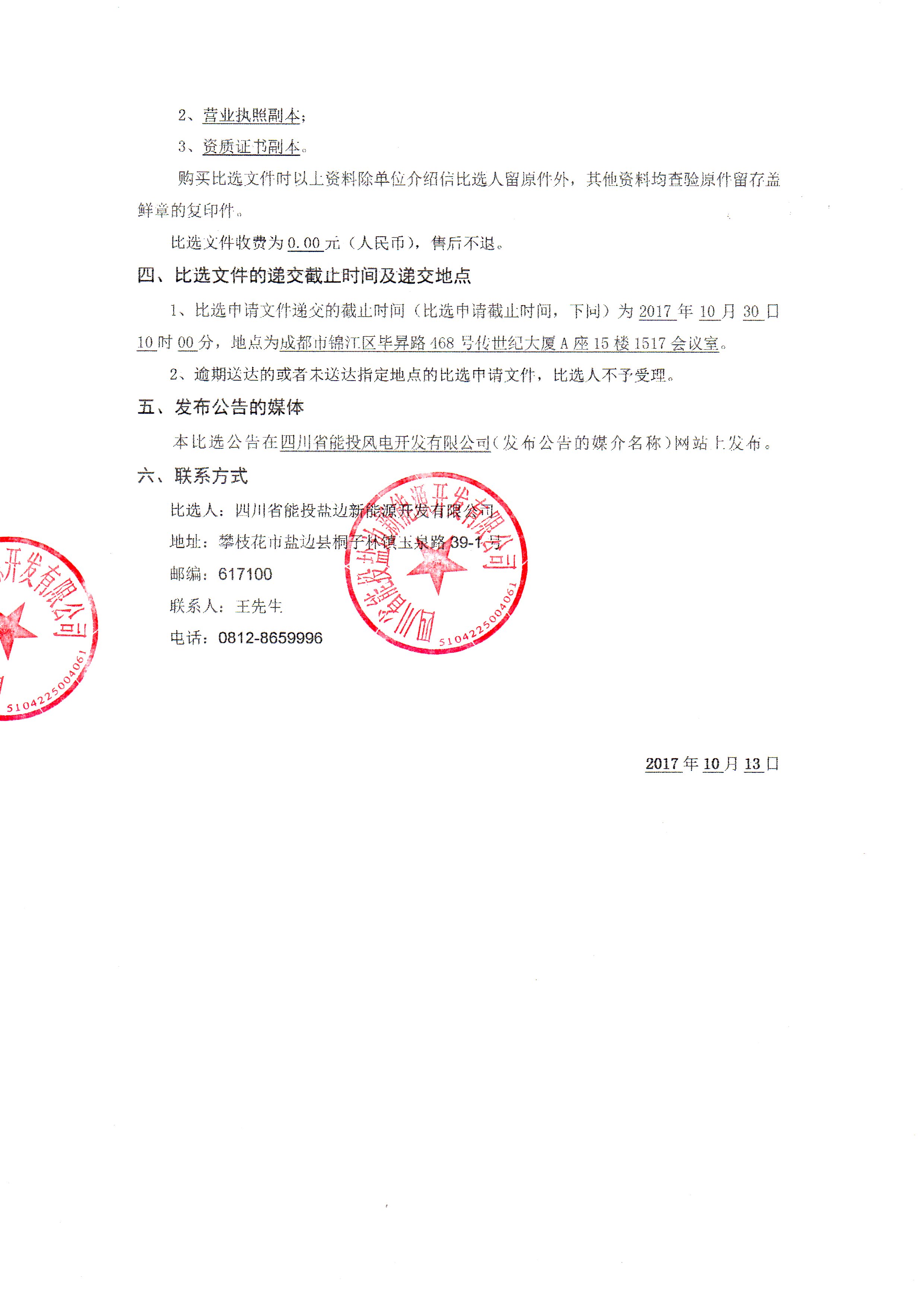 上一条:四川省能投盐边新能源开发有限公司2017-2018年度金安光伏电站、红山光伏电站现场看守及维护服务比选公告