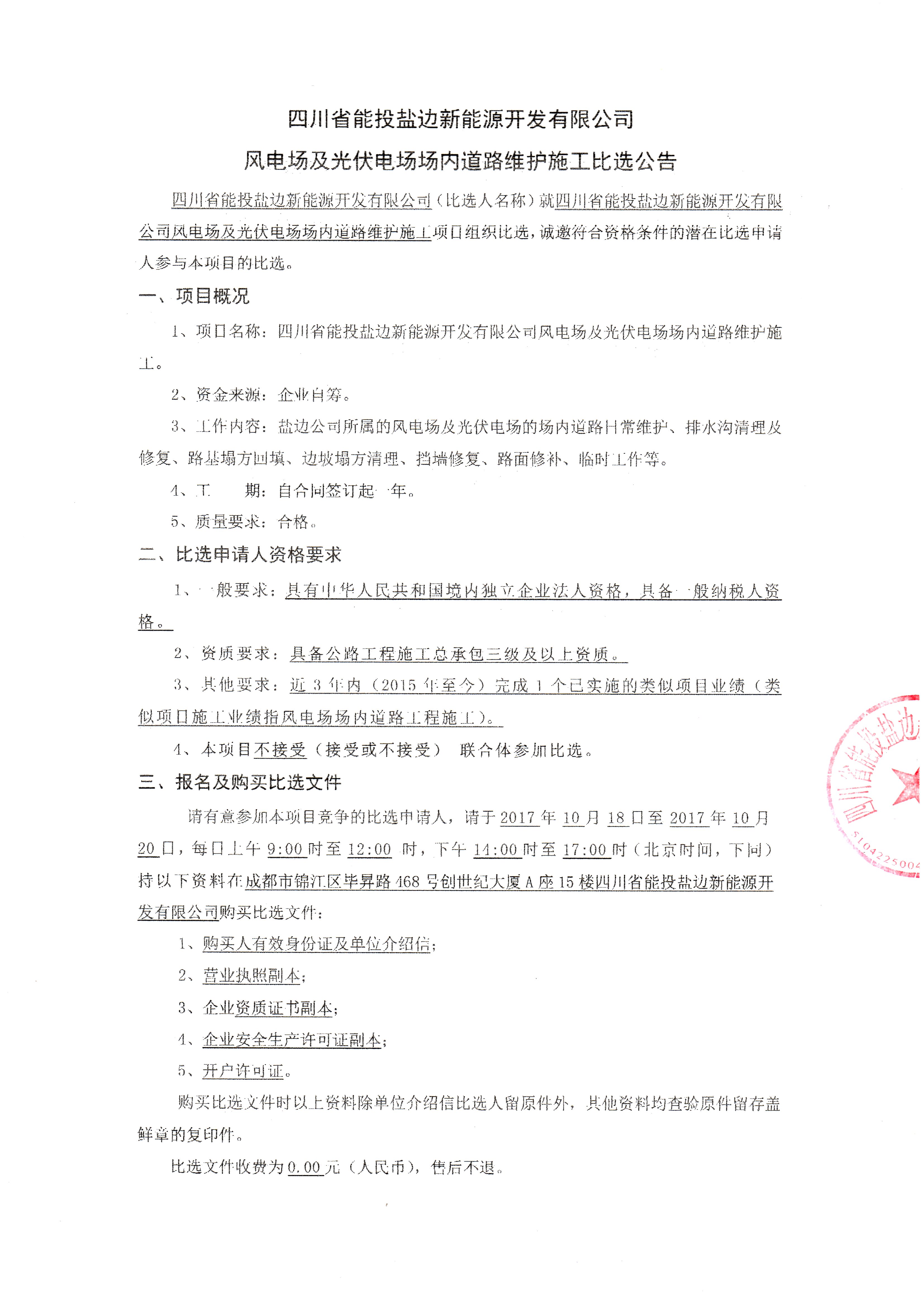 下一条:四川省能投盐边新能源开发有限公司2017-2018年度金安光伏电站、红山光伏电站现场看守及维护服务比选公告