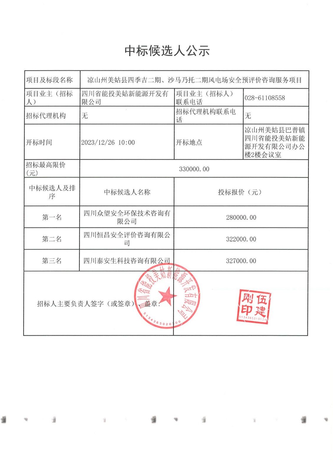 上一条:凉山州美姑县四季吉二期、沙马乃托二期风电场施工测量控制网测设服务项目中标候选人公示