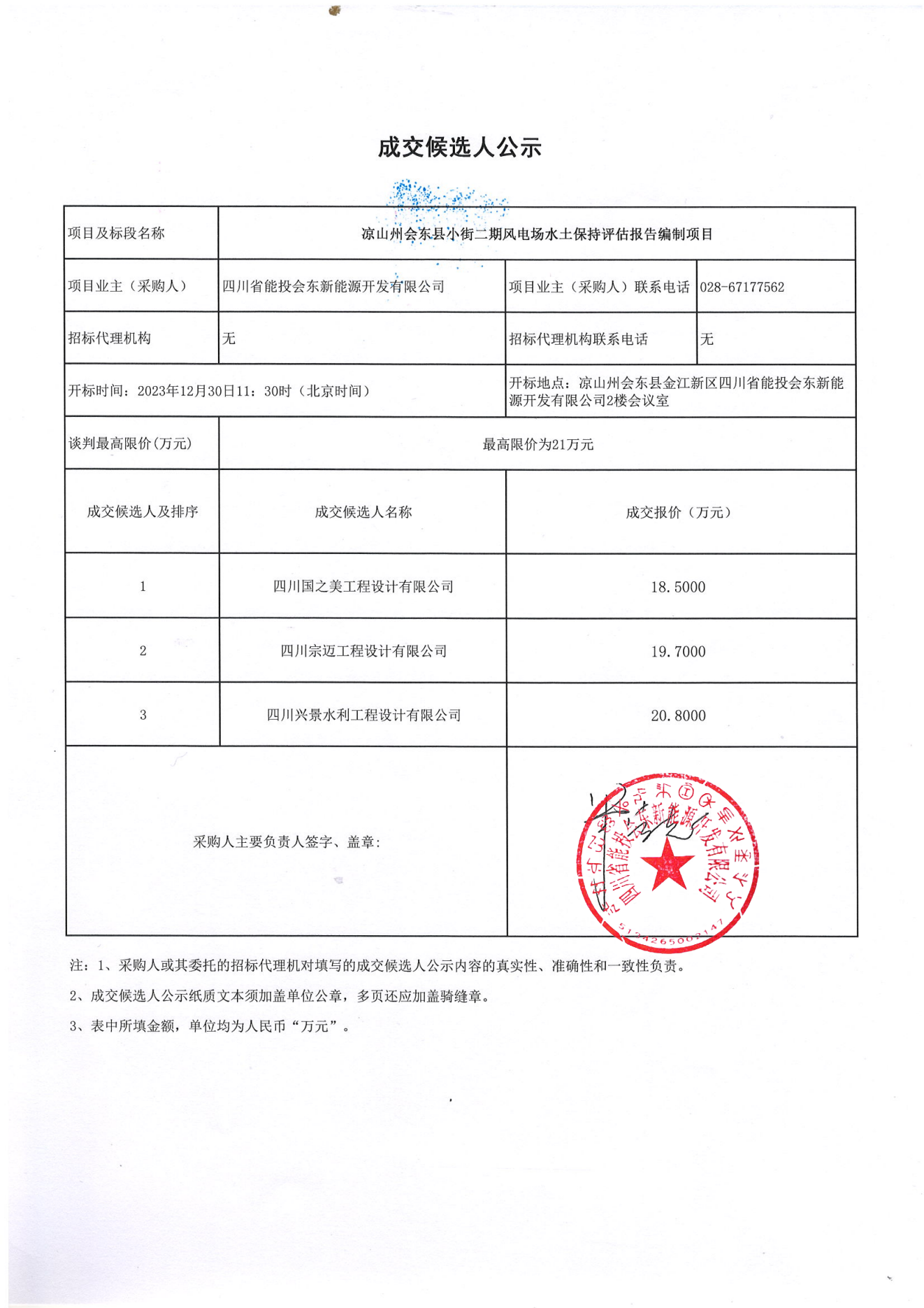 下一条:凉山州会东县小街二期风电场环境影响评价报告编制项目成交候选人公示
