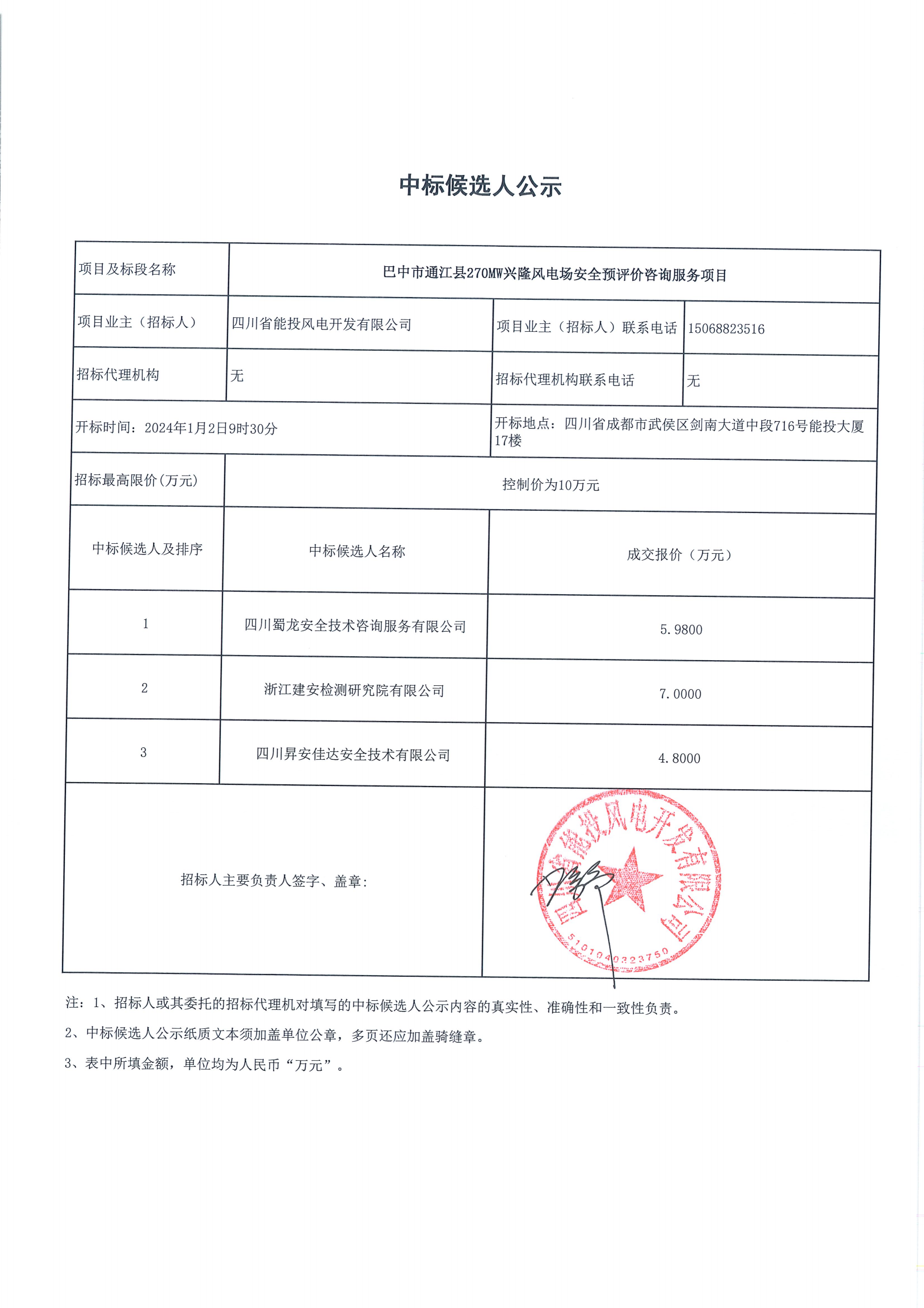 下一条:巴中市通江县270MW兴隆风电场社会稳定性分析报告编制服务项目中标候选人公示