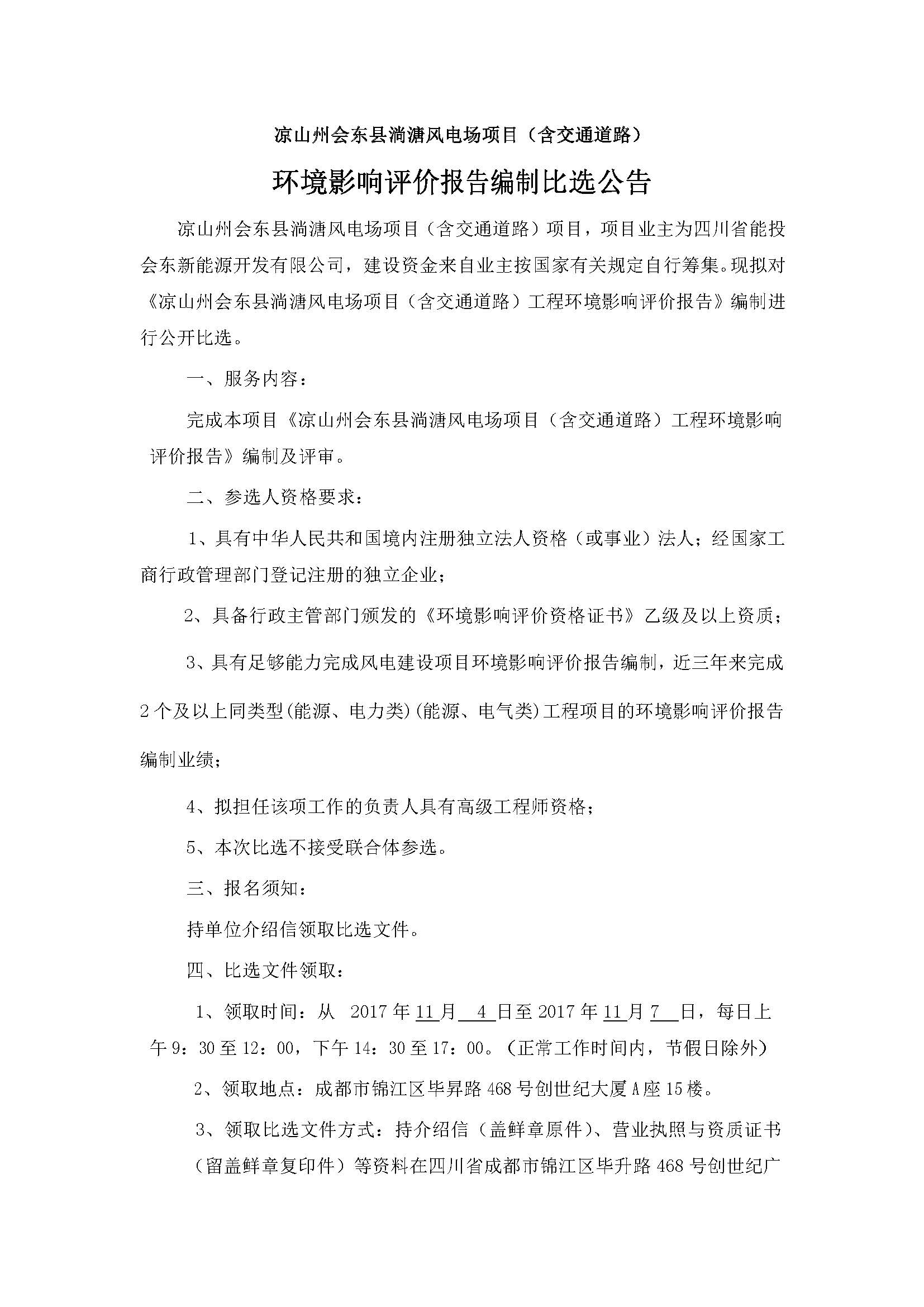 上一条:凉山州会东县淌溏风电场项目(含交通工程)工程水土保持报告编制比选文件