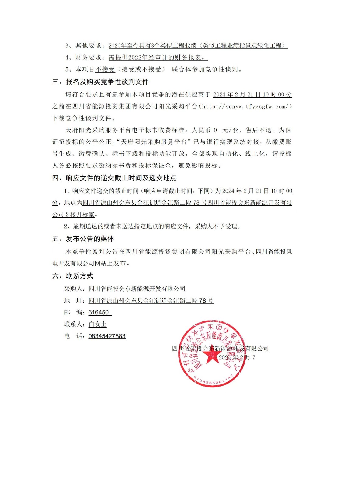 请符合要求且有意参加本项目竞争的潜在供应商于2024年2月21日10时00分之前在四川省能源投资集团有限公司阳光采购平台(http://scnyw.tfygcgfw.com/)下载竞争性谈判文件。