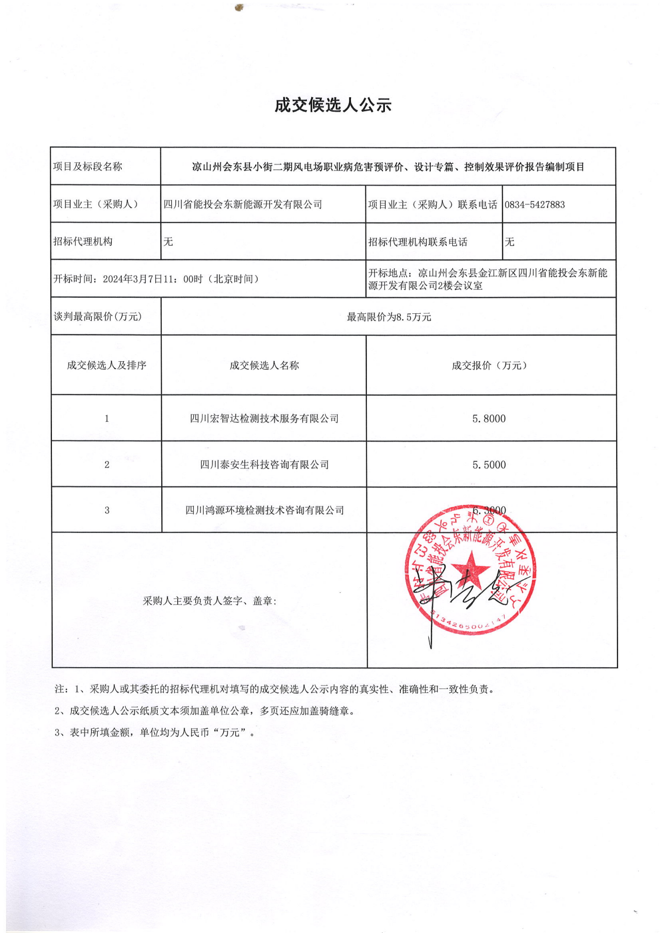 上一条:凉山州会东县淌塘三期风电场职业病危害预评价、设计专篇、控制效果评价报告编制项目成交候选人公示