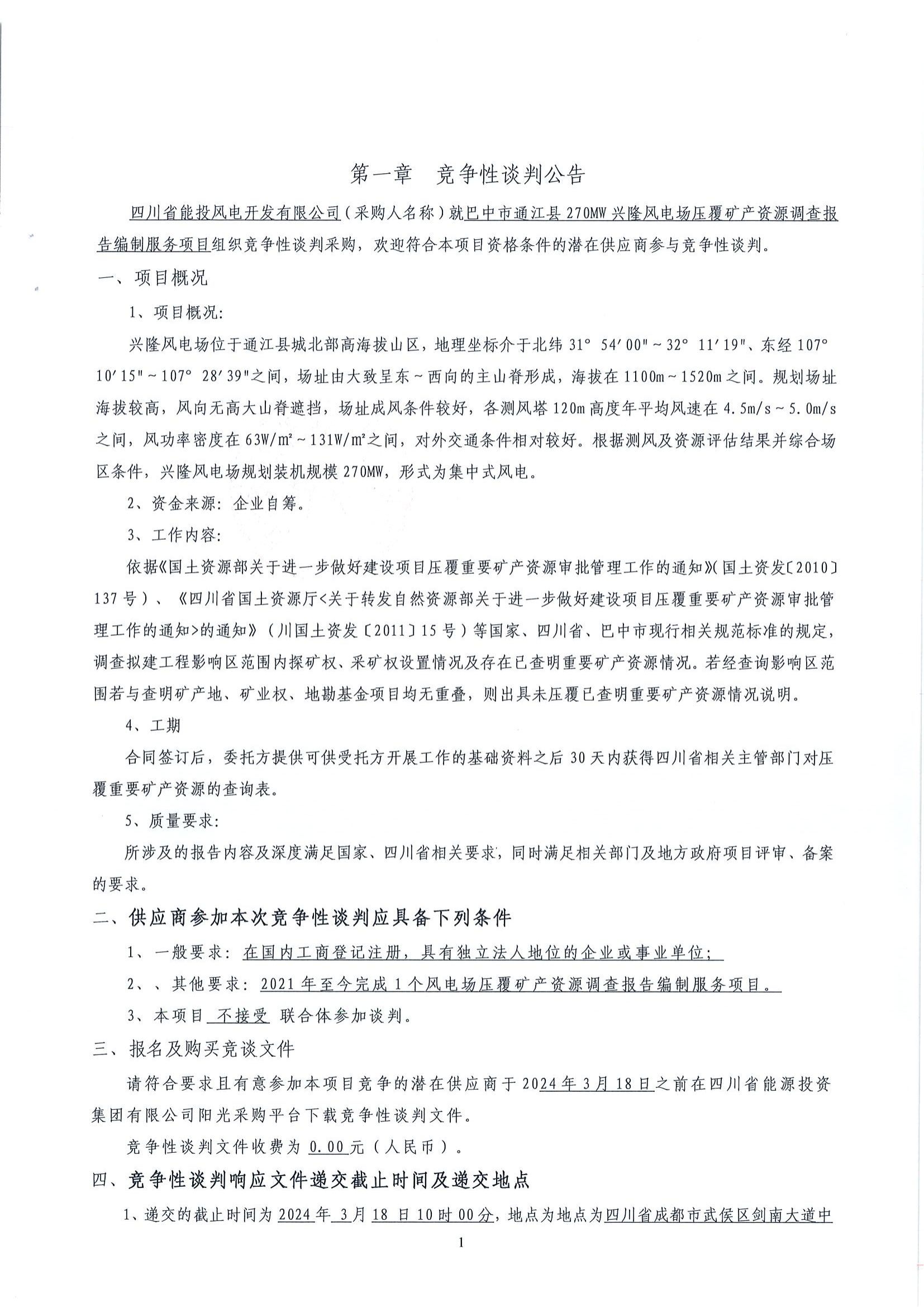 请符合要求且有意参加本项目竞争的潜在供应商于2024年3月18日之前在四川省能源投资集团有限公司阳光采购平台下载竞争性谈判文件。
