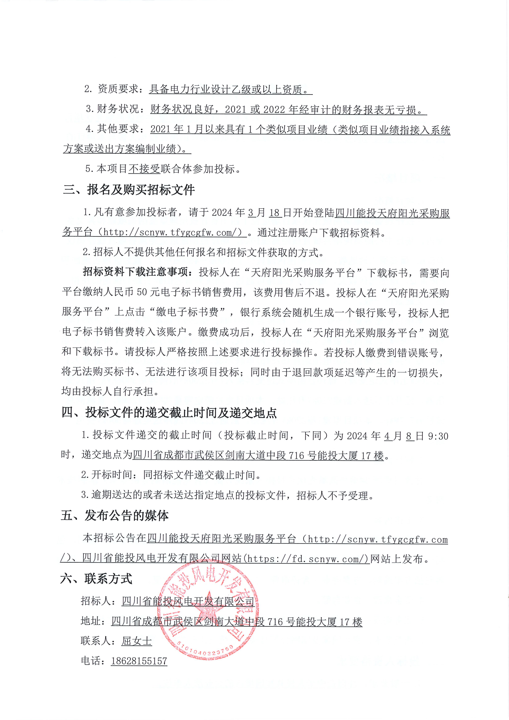 1.凡有意参加投标者,请于2024年3月18日开始登陆四川能投天府阳光采购服务平台(http://scnyw.tfygcgfw.com/)。通过注册账户下载招标资料。