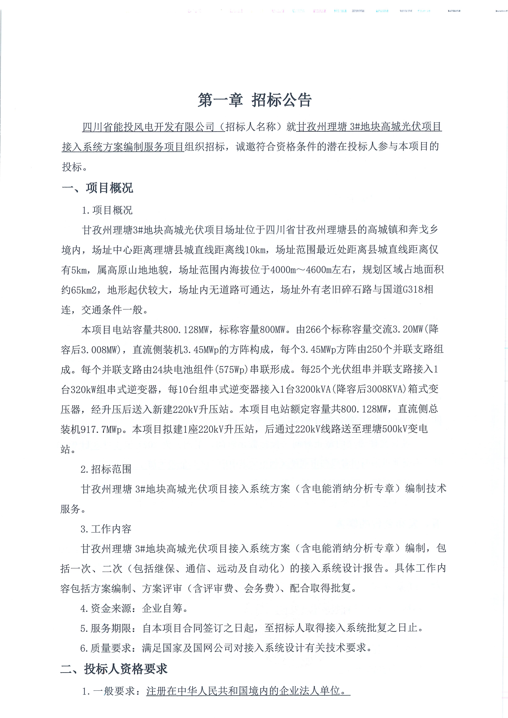 甘孜州理塘3#地块高城光伏项目接入系统方案(含电能消纳分析专章)编制,包括一次、二次(包括继保、通信、远动及自动化)的接入系统设计报告。具体工作内容包括方案编制、方案评审(含评审费、会务费)、配合取得批复。