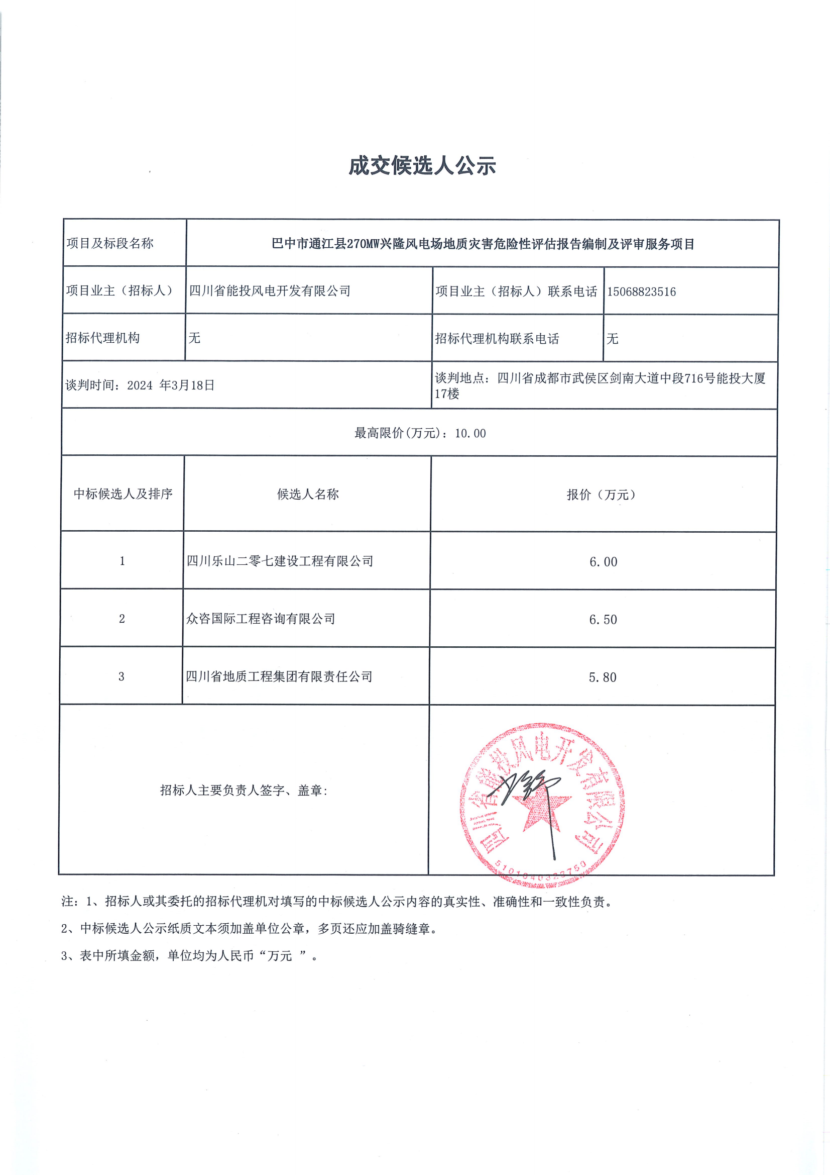 上一条:巴中市通江县270MW兴隆风电场压覆矿产资源调查报告编制服务项目成交候选人公示