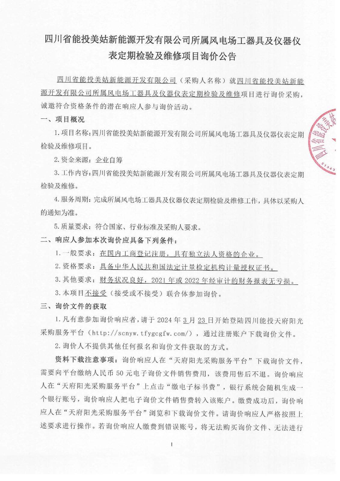 1.凡有意参加询价响应者,请于2024年3月23日开始登陆四川能投天府阳光采购服务平台(http://scnyw.tfygcgfw.com/),通过注册账户下载询价文件。