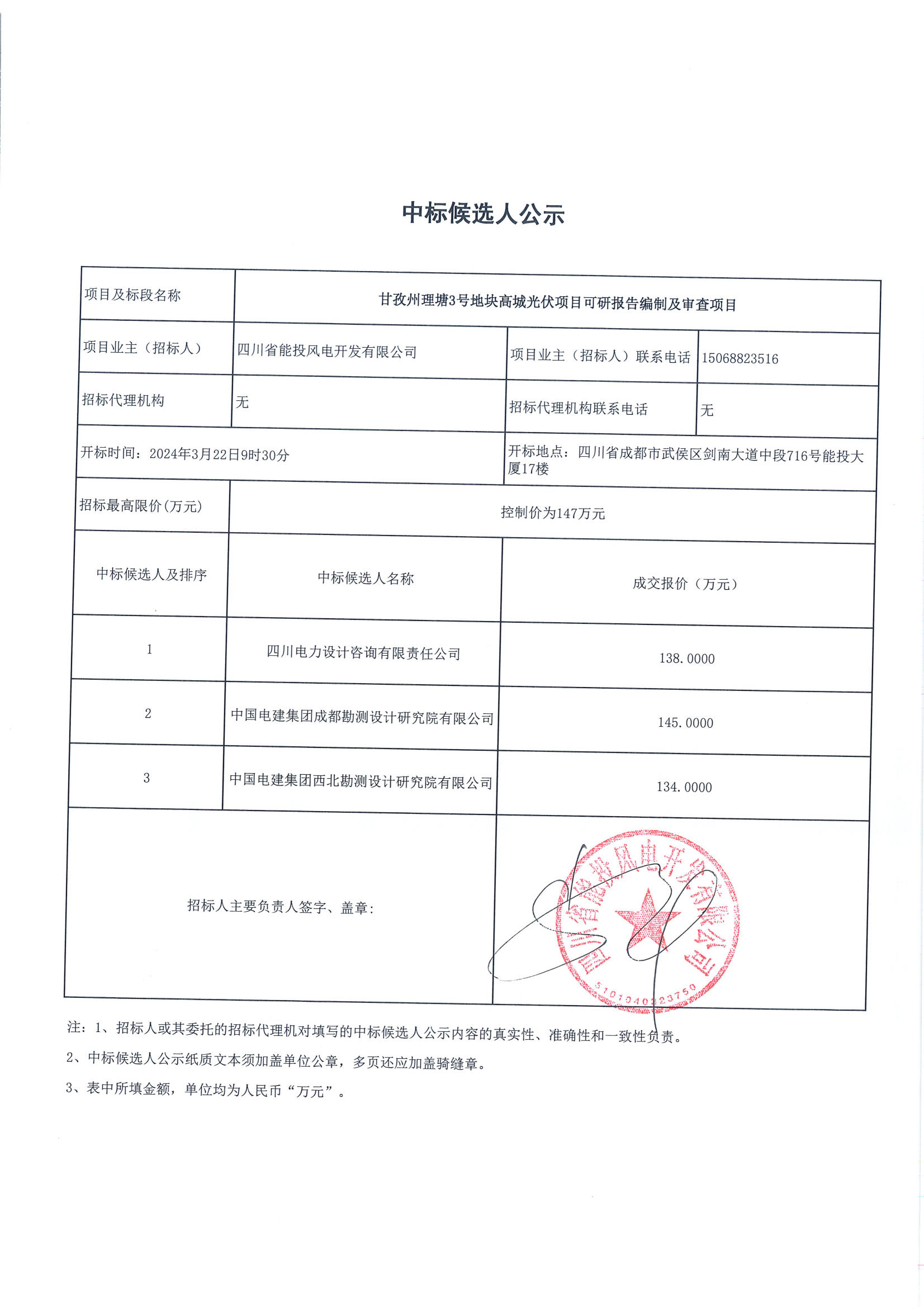 上一条:马尔康市英朗30万千瓦光伏电站项目可研报告编制及审查项目中标候选人公示