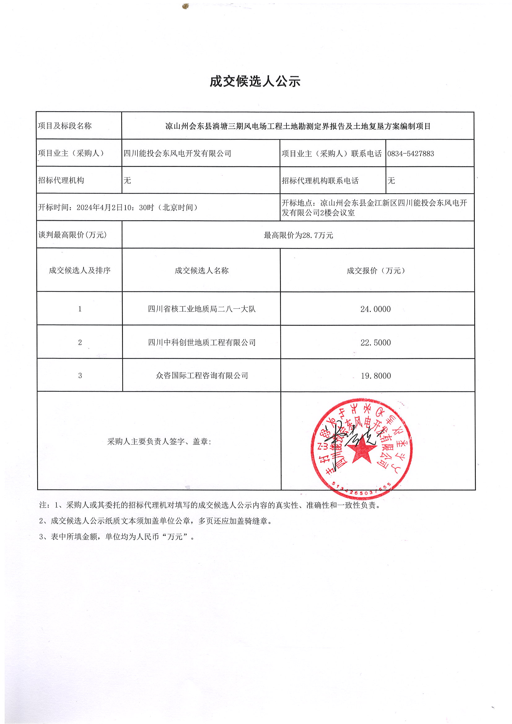 下一条:凉山州会东县堵格二期风电场工程土地勘测定界报告及土地复垦方案编制项目成交候选人公示