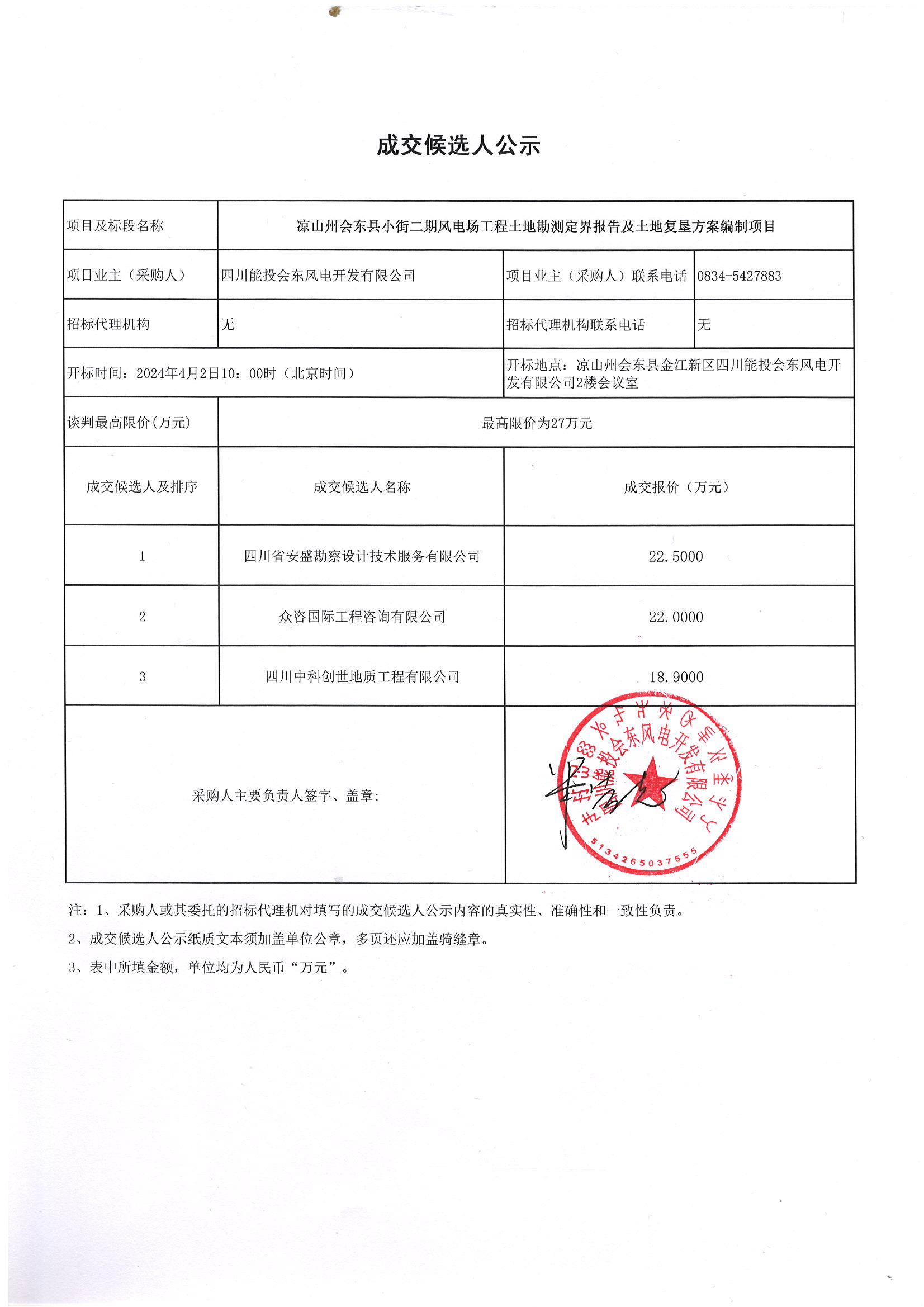 下一条:凉山州会东县淌塘三期风电场工程土地勘测定界报告及土地复垦方案编制项目成交候选人公示