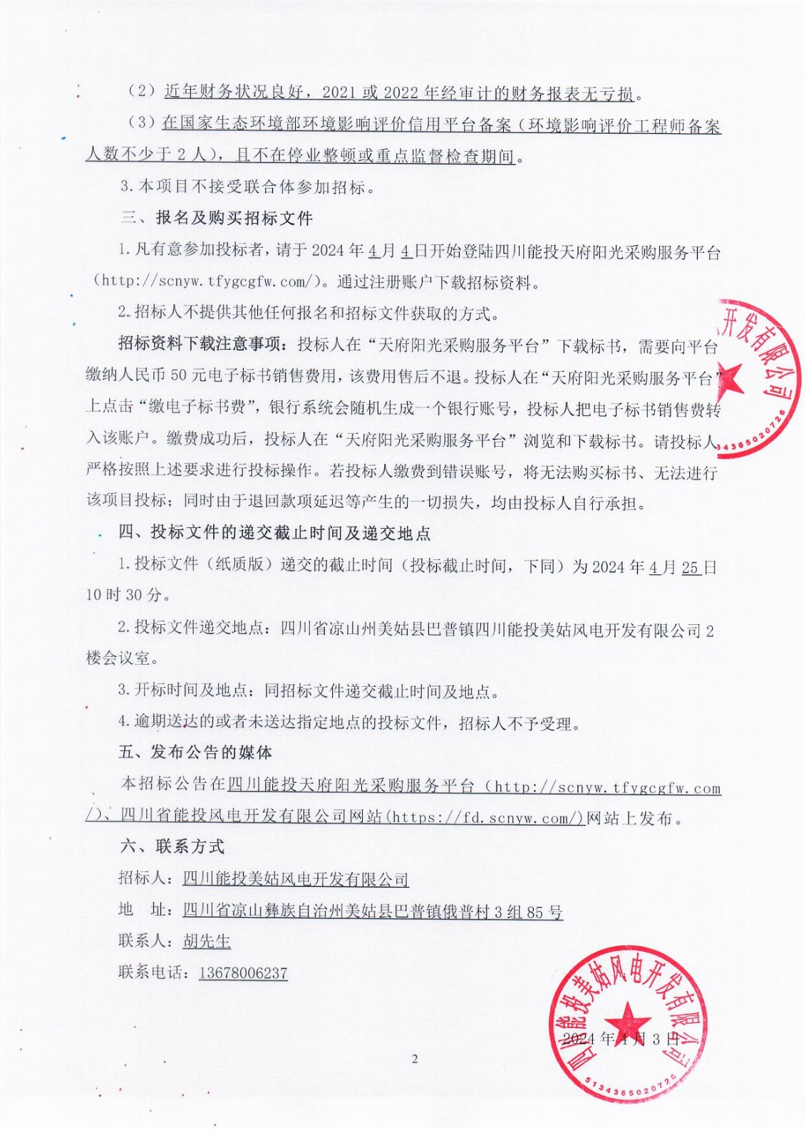 1.项目名称:凉山州美姑县四季吉二期风电场项目环境影响评价报告编制服务。