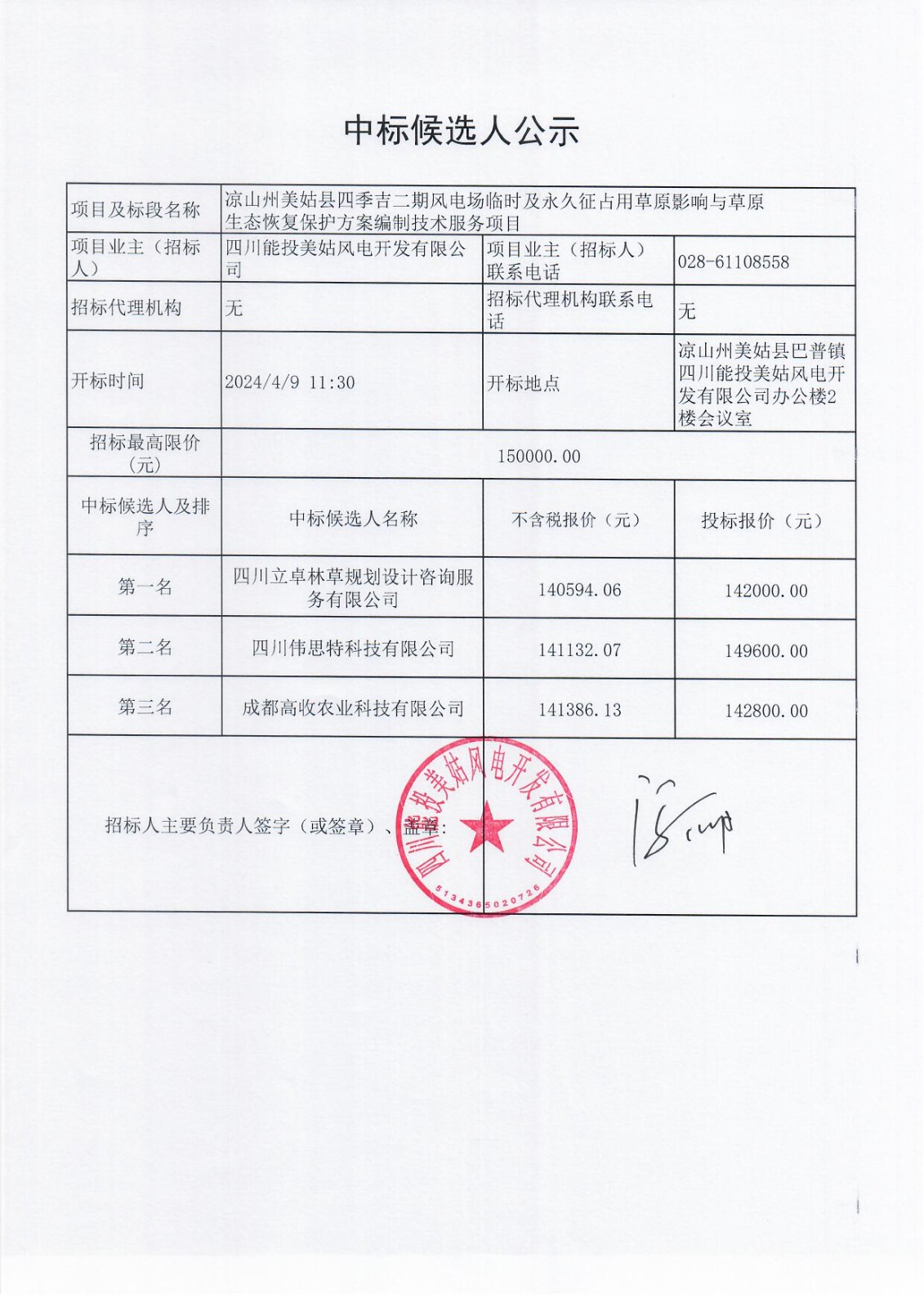 上一条:凉山州美姑县四季吉二期风电场拟使用临时及永久林地可行性报告及采伐作业设计技术服务项目中标候选人公示