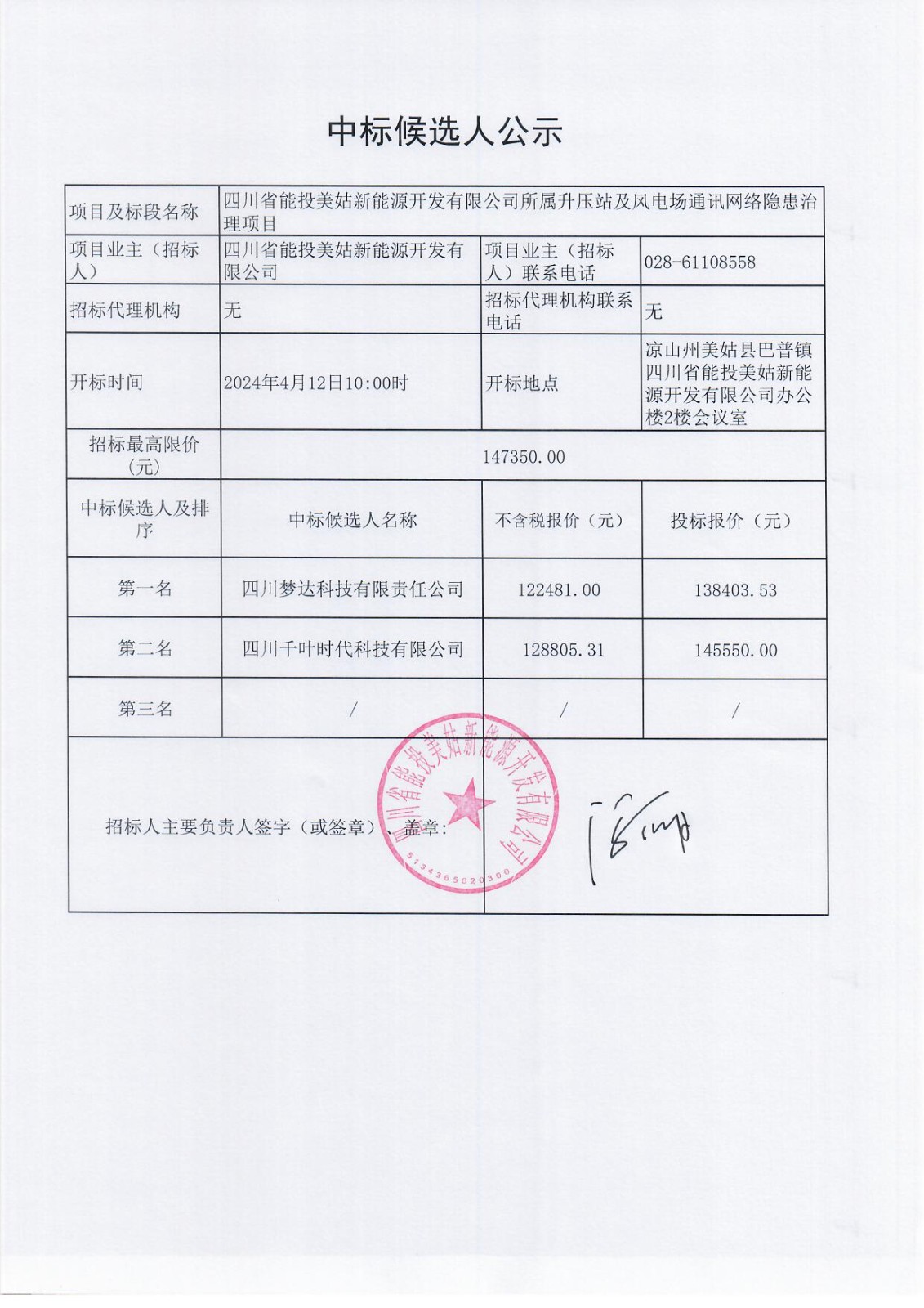 上一条:凉山州美姑县井叶特西风电场、沙马乃托一期风电场输电线路2024年度运行维护服务项目中标候选人公示