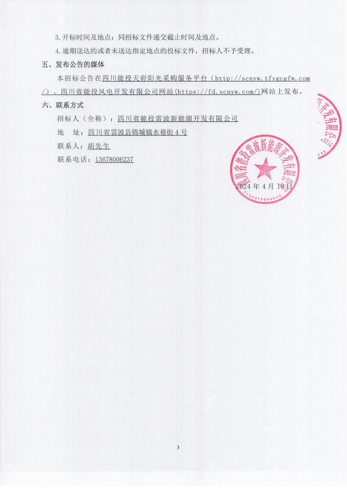 招标人(全称):四川省能投雷波新能源开发有限公司