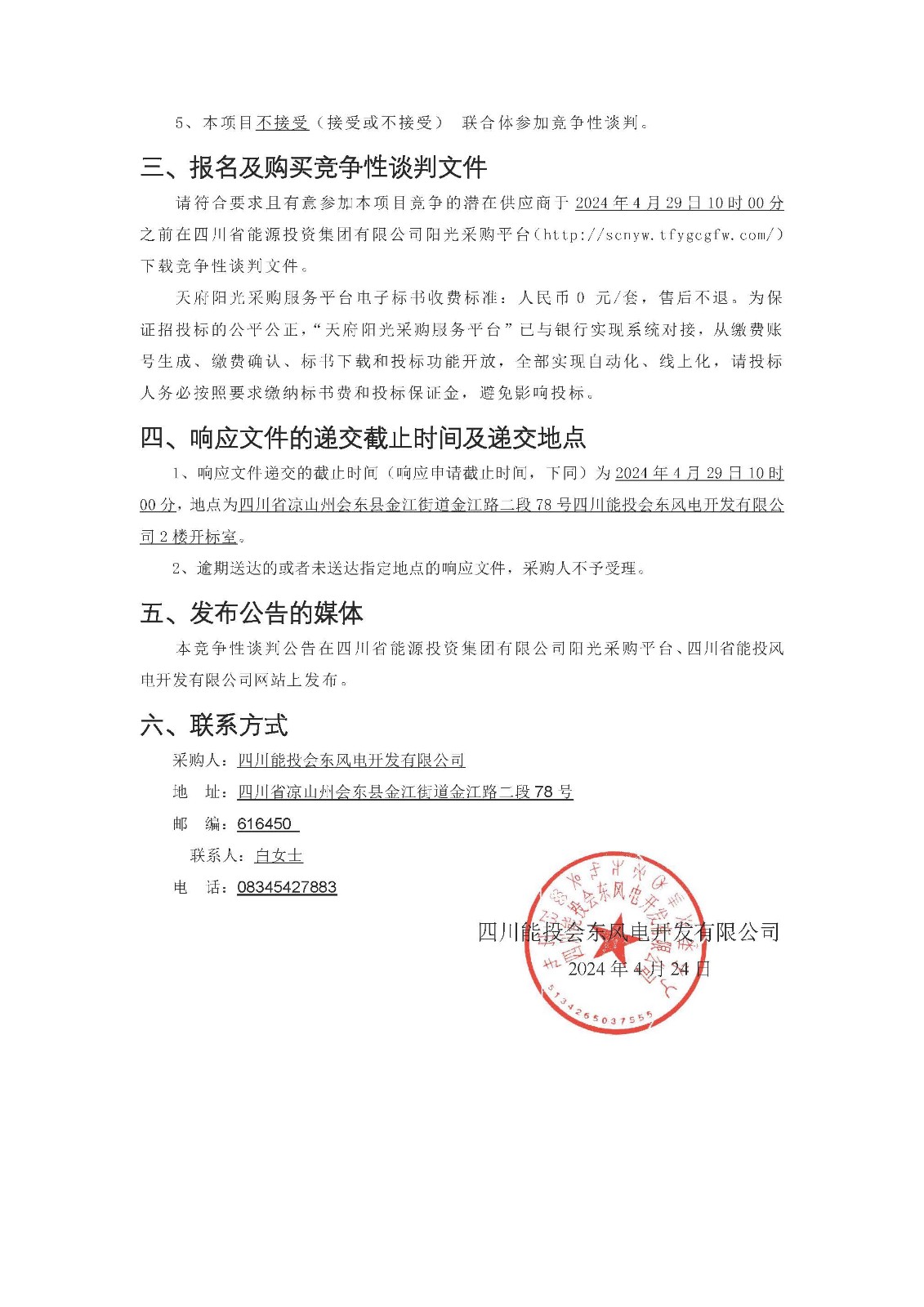 请符合要求且有意参加本项目竞争的潜在供应商于2024年4月29日10时00分之前在四川省能源投资集团有限公司阳光采购平台(http://scnyw.tfygcgfw.com/)下载竞争性谈判文件。
