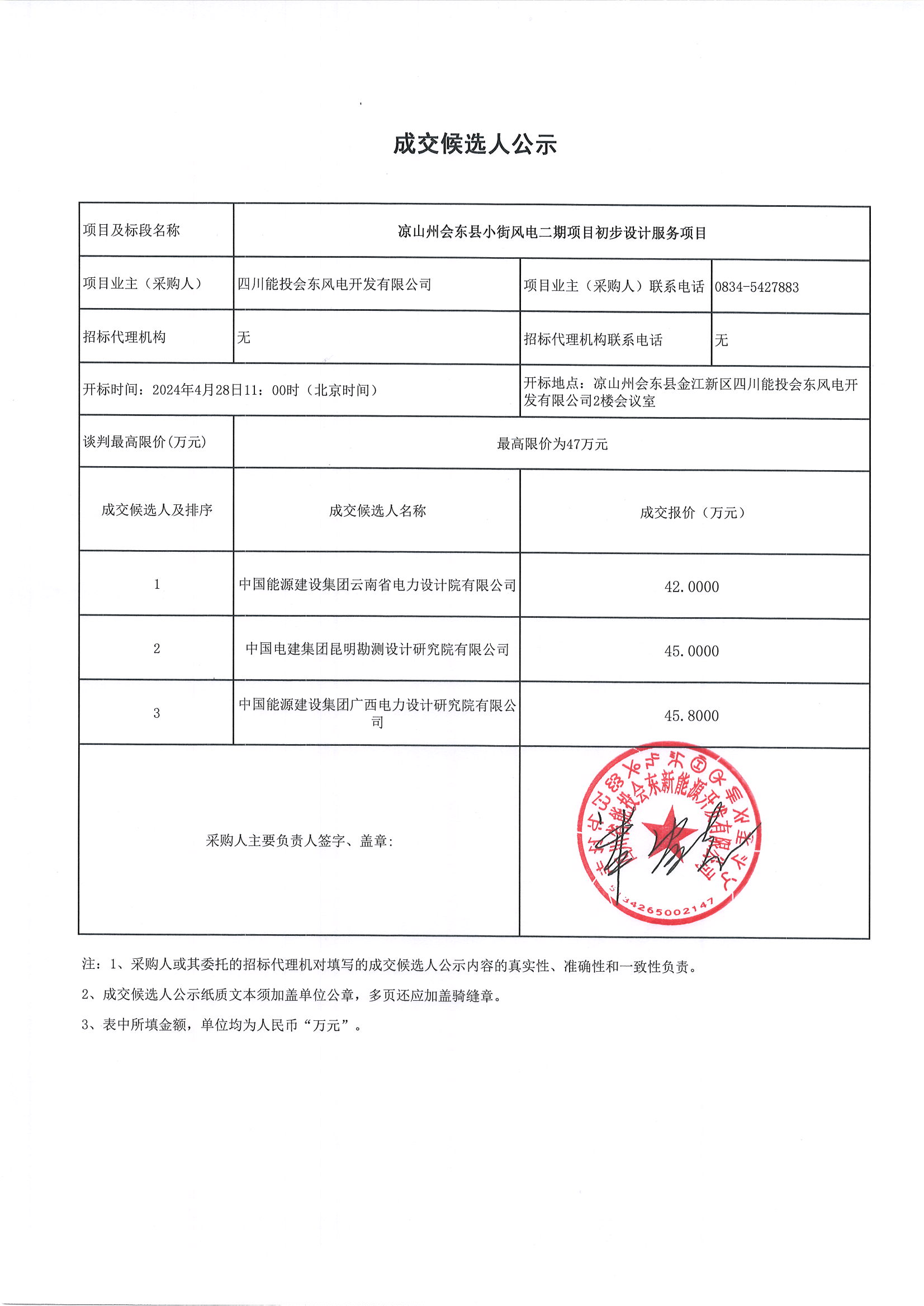 上一条:凉山州会东县堵格风电二期项目初步设计服务项目成交候选人公示