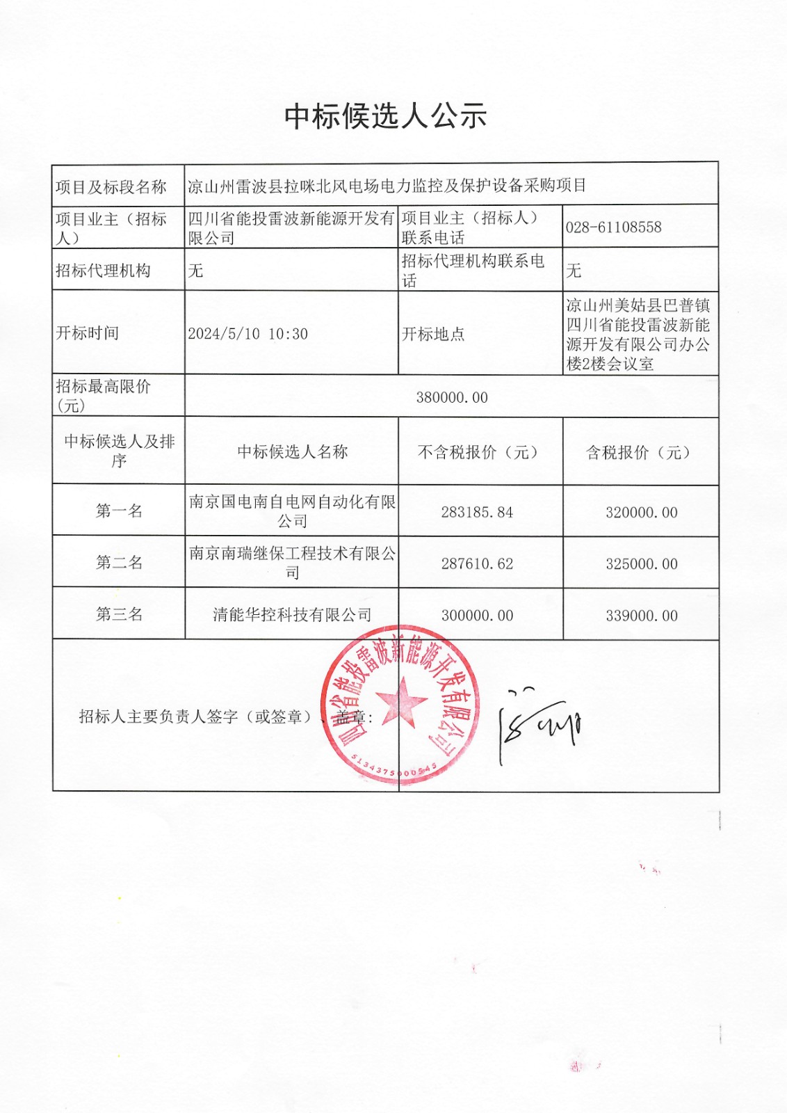 上一条:凉山州雷波县拉咪北风电场风功率预测系统及AGC系统采购项目中标候选人公示
