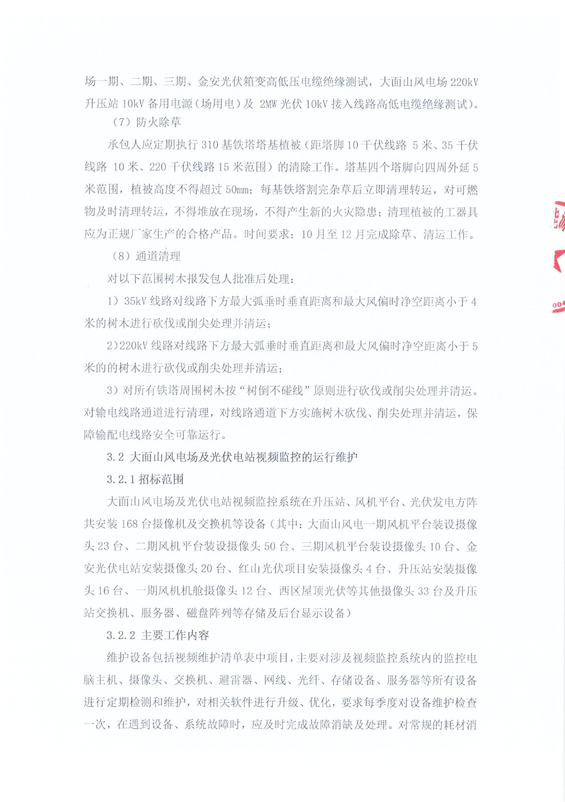 1.项目名称:大面山风电场及光伏电站2024年度输电线路及视频监控运行维护服务
