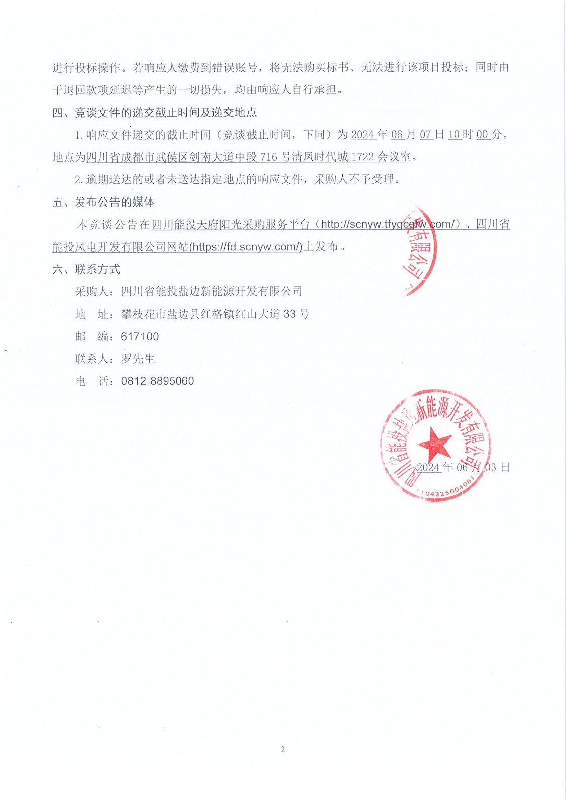 1.响应文件递交的截止时间(竞谈截止时间,下同)为2024年06月07日10时00分,地点为四川省成都市武侯区剑南大道中段716号清凤时代城1722会议室。