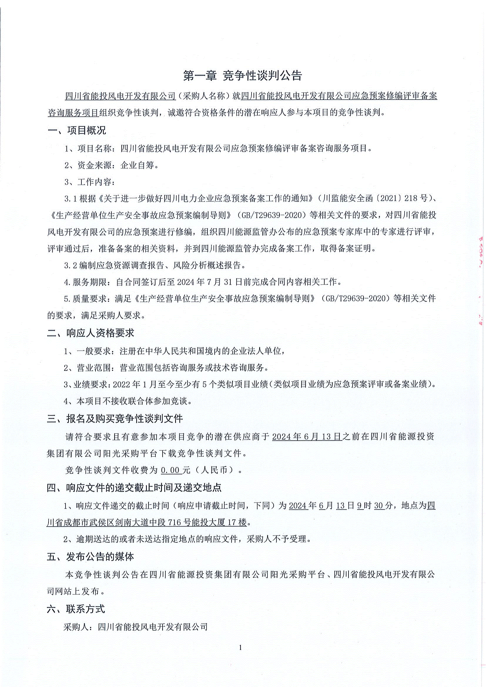 请符合要求且有意参加本项目竞争的潜在供应商于2024年6月13日之前在四川省能源投资集团有限公司阳光采购平台下载竞争性谈判文件。