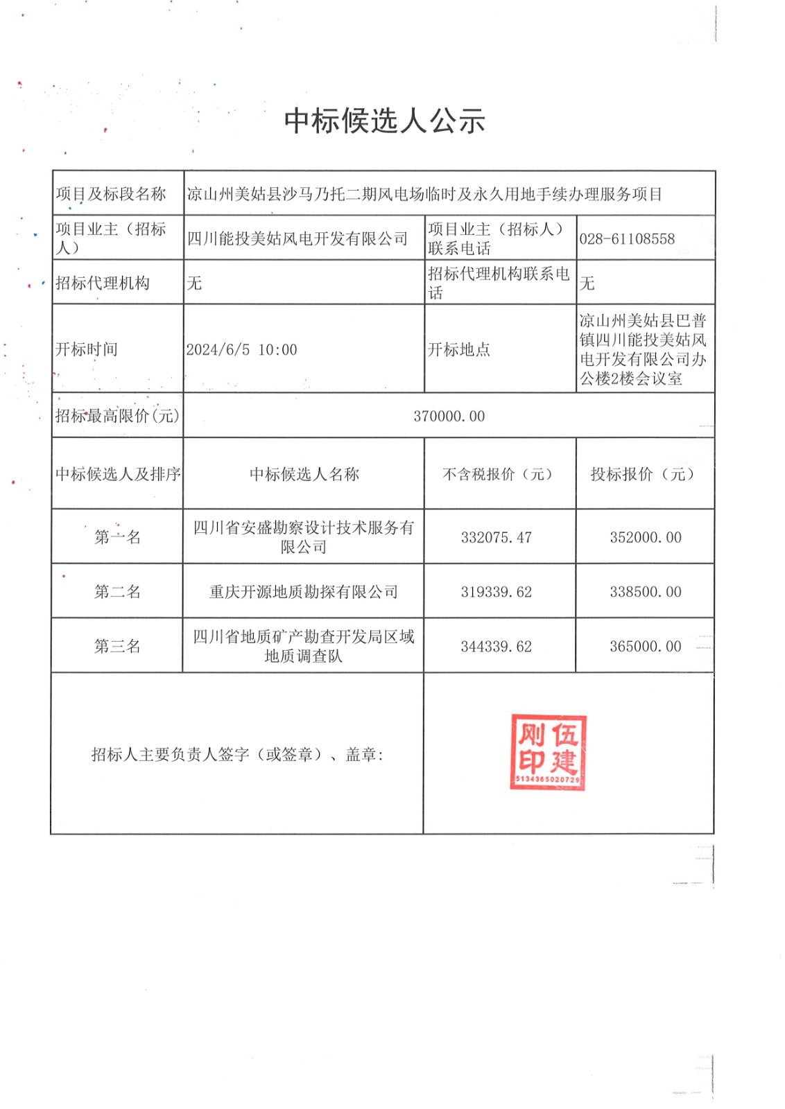 上一条:凉山州美姑县四季吉二期风电场临时及永久用地手续办理服务项目中标候选人公示
