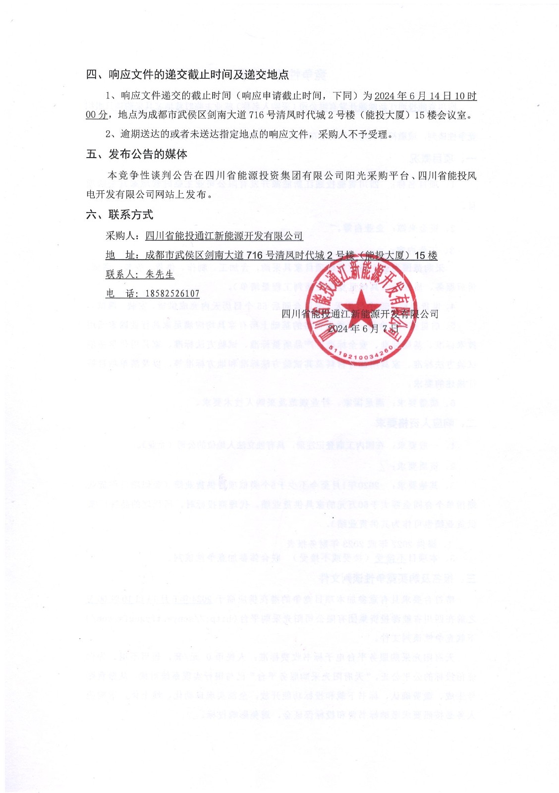 1、响应文件递交的截止时间(响应申请截止时间,下同)为2024年6月14日10时00分,地点为成都市武侯区剑南大道716号清凤时代城2号楼(能投大厦)15楼会议室。