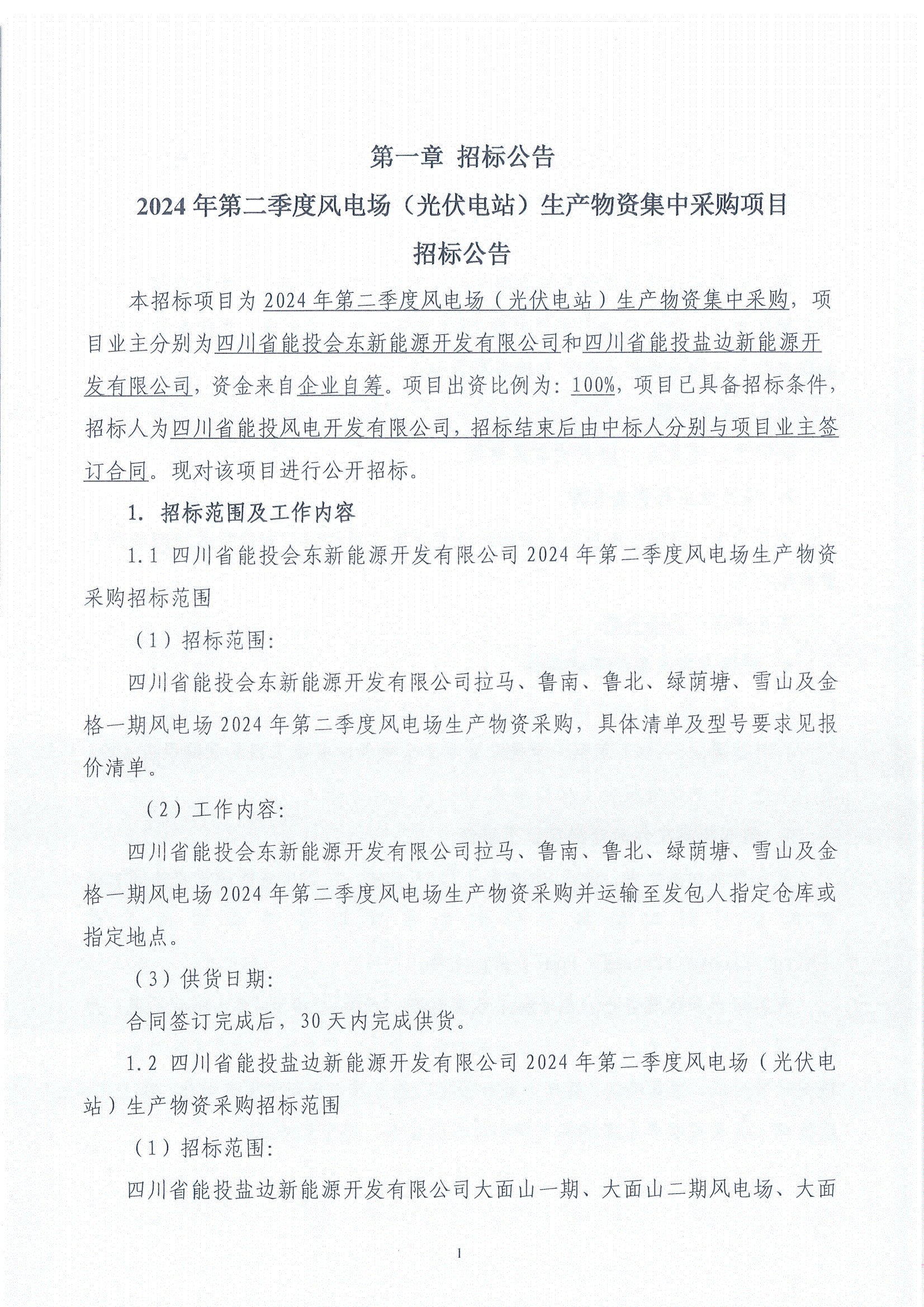 1.2 四川省能投盐边新能源开发有限公司2024年第二季度风电场(光伏电站)生产物资采购招标范围