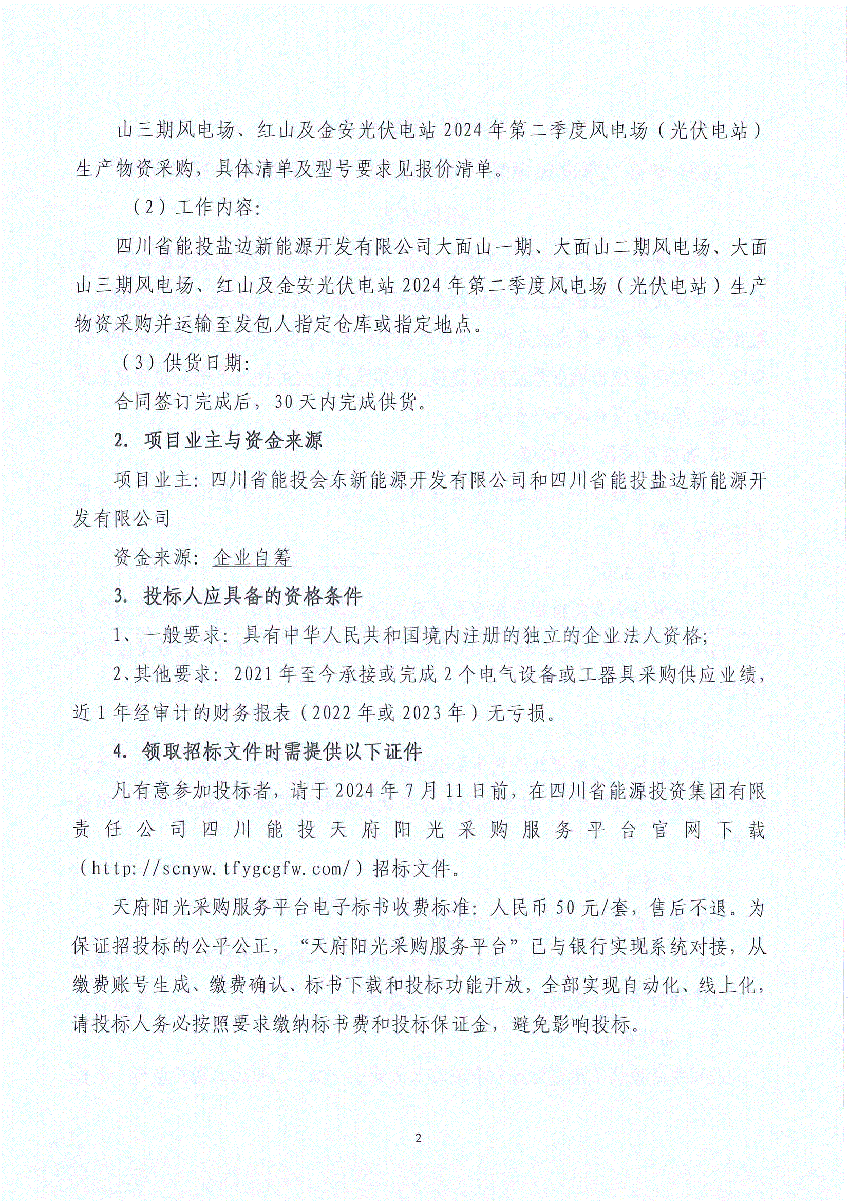 凡有意参加投标者,请于2024年7月11日前,在四川省能源投资集团有限责任公司四川能投天府阳光采购服务平台官网下载(http://scnyw.tfygcgfw.com/)招标文件。