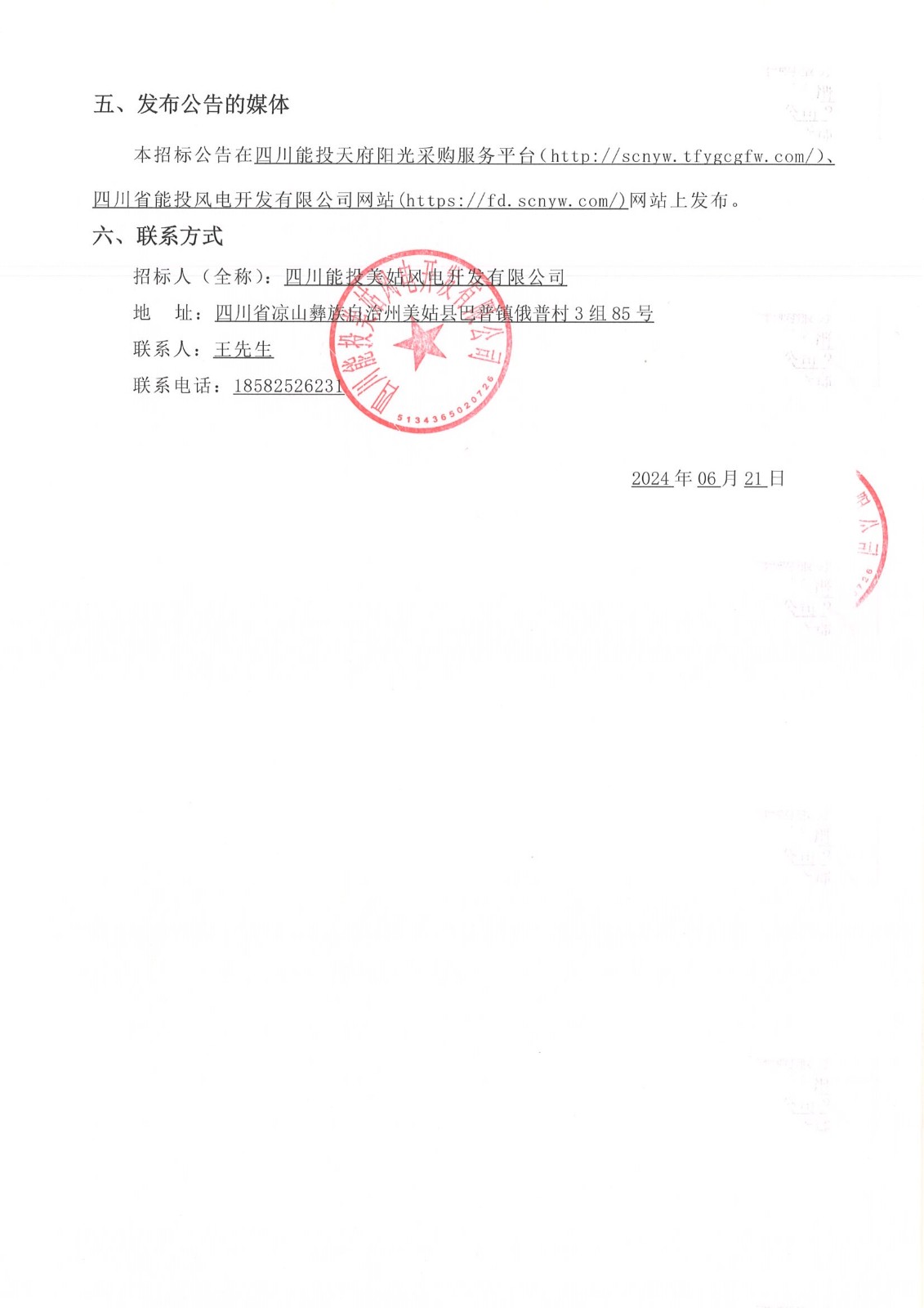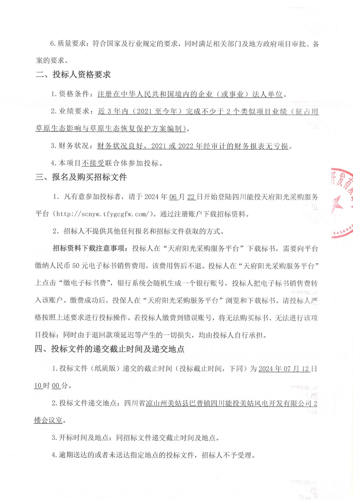 2.投标文件递交地点:四川省凉山州美姑县巴普镇四川能投美姑风电开发有限公司2楼会议室。