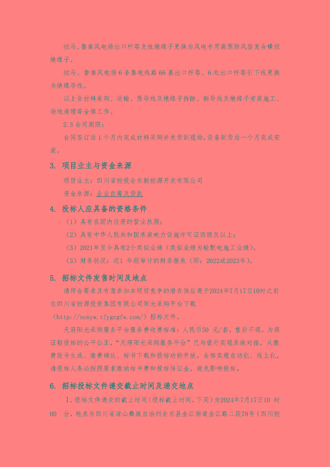 请符合要求且有意参加本项目竞争的潜在供应商于2024年7月17日10时之前在四川省能源投资集团有限公司阳光采购平台下载(http://scnyw.tfygcgfw.com/)招标文件。