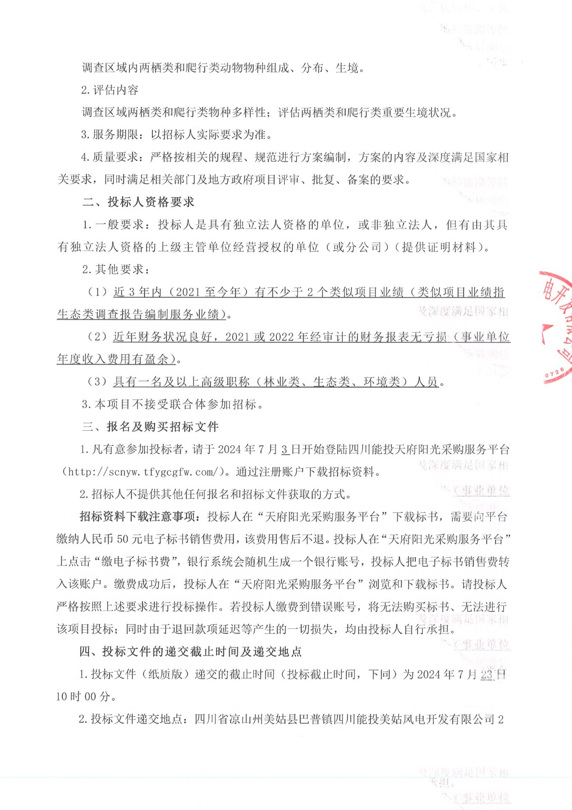 1.凡有意参加投标者,请于2024年7月3日开始登陆四川能投天府阳光采购服务平台(http://scnyw.tfygcgfw.com/)。通过注册账户下载招标资料。