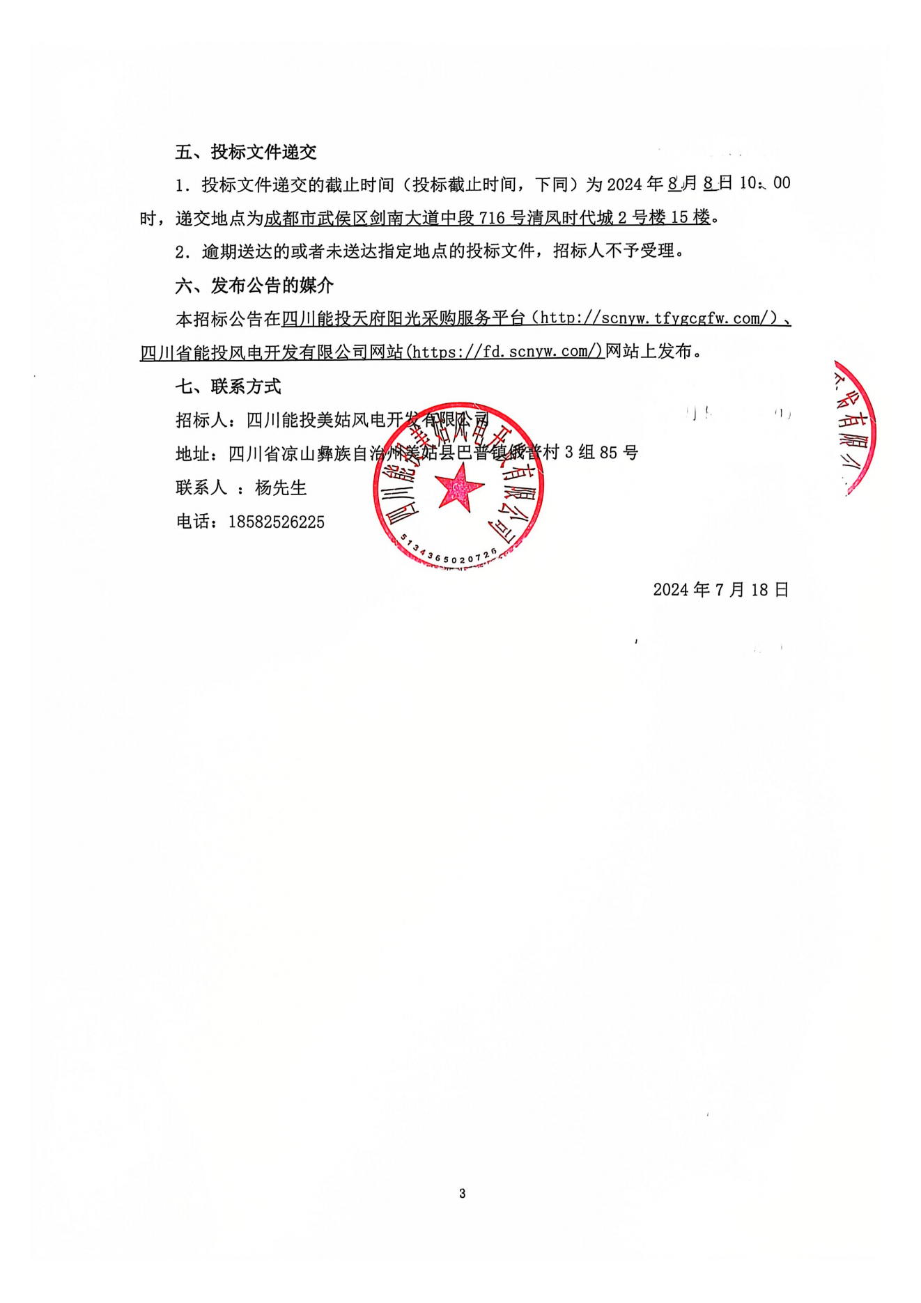招标人:四川能投美姑风电开发有限公司
