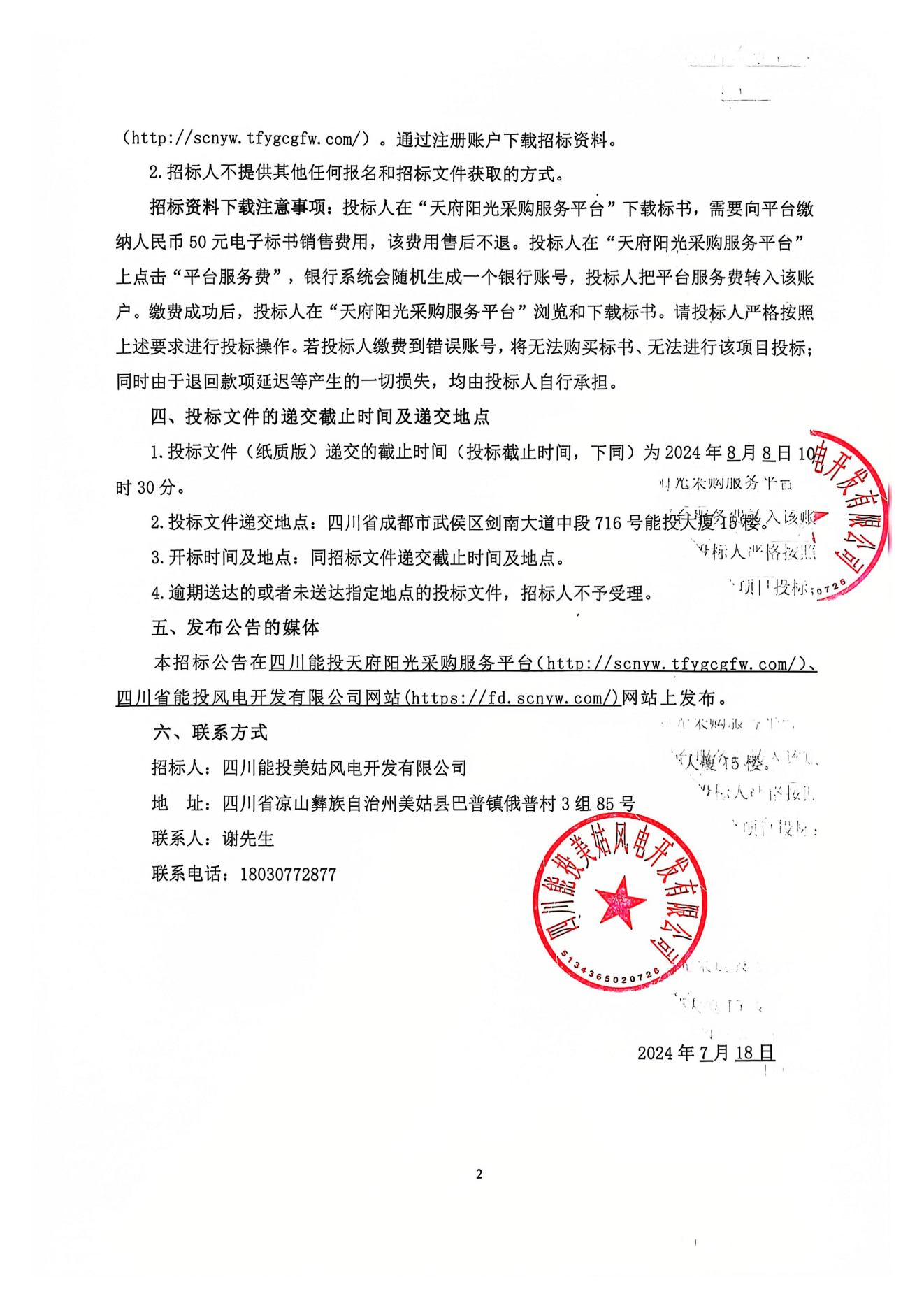 1.凡有意参加投标者,请于2024年7月19日开始登陆四川能投天府阳光采购服务平台(http://scnyw.tfygcgfw.com/)。通过注册账户下载招标资料。