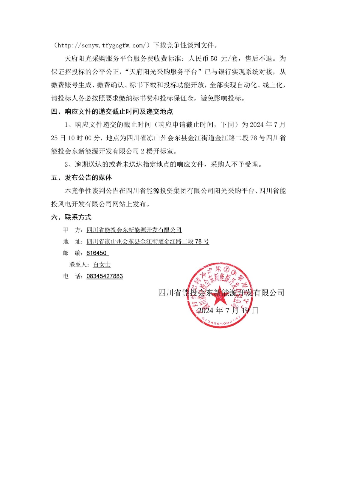 请符合要求且有意参加本项目竞争的潜在供应商于2024年7月25日10时00分之前在四川省能源投资集团有限公司阳光采购平台(http://scnyw.tfygcgfw.com/)下载竞争性谈判文件。
