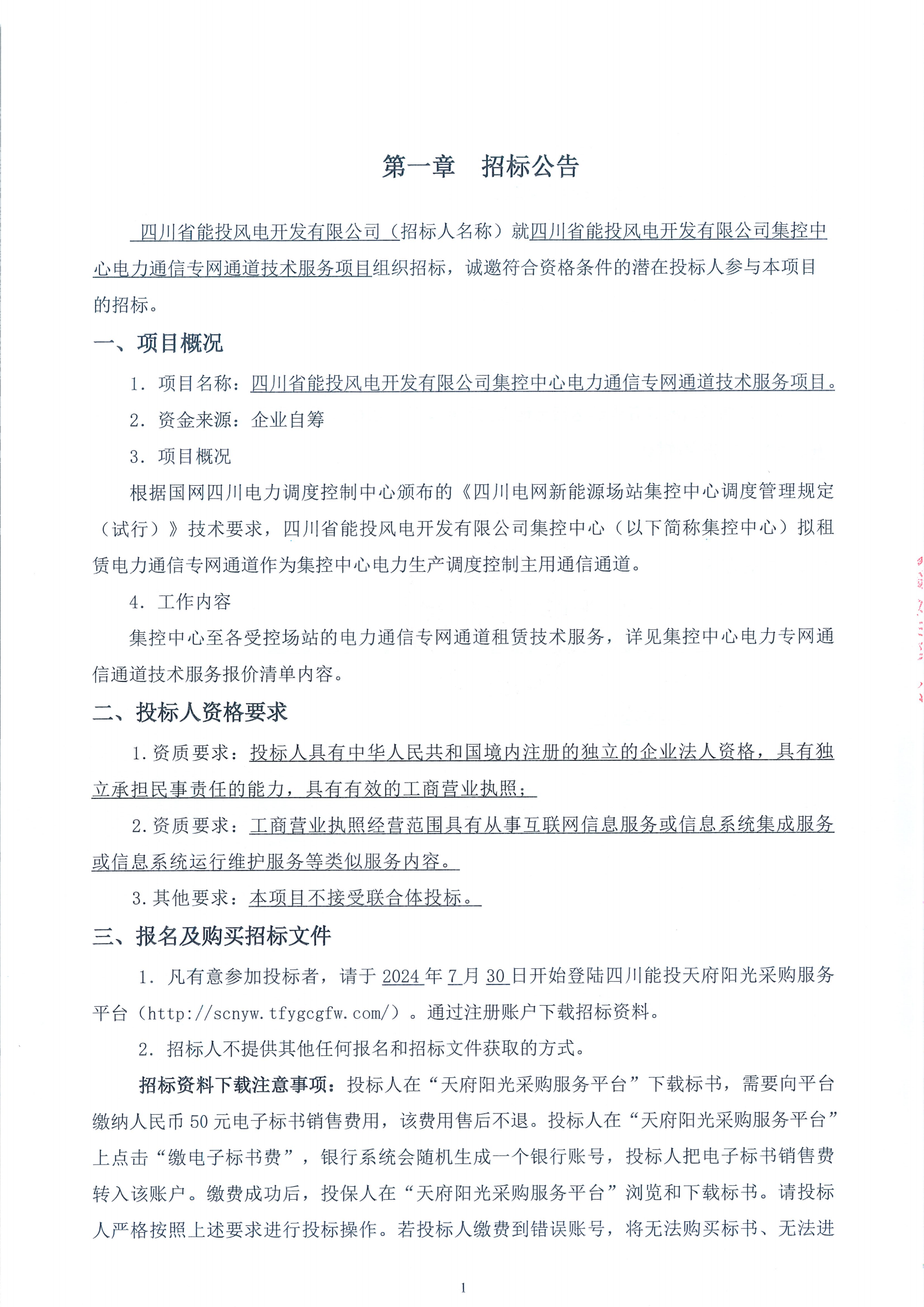 1.凡有意参加投标者,请于2024年7月30日开始登陆四川能投天府阳光采购服务平台(http://scnyw.tfygcgfw.com/)。通过注册账户下载招标资料。