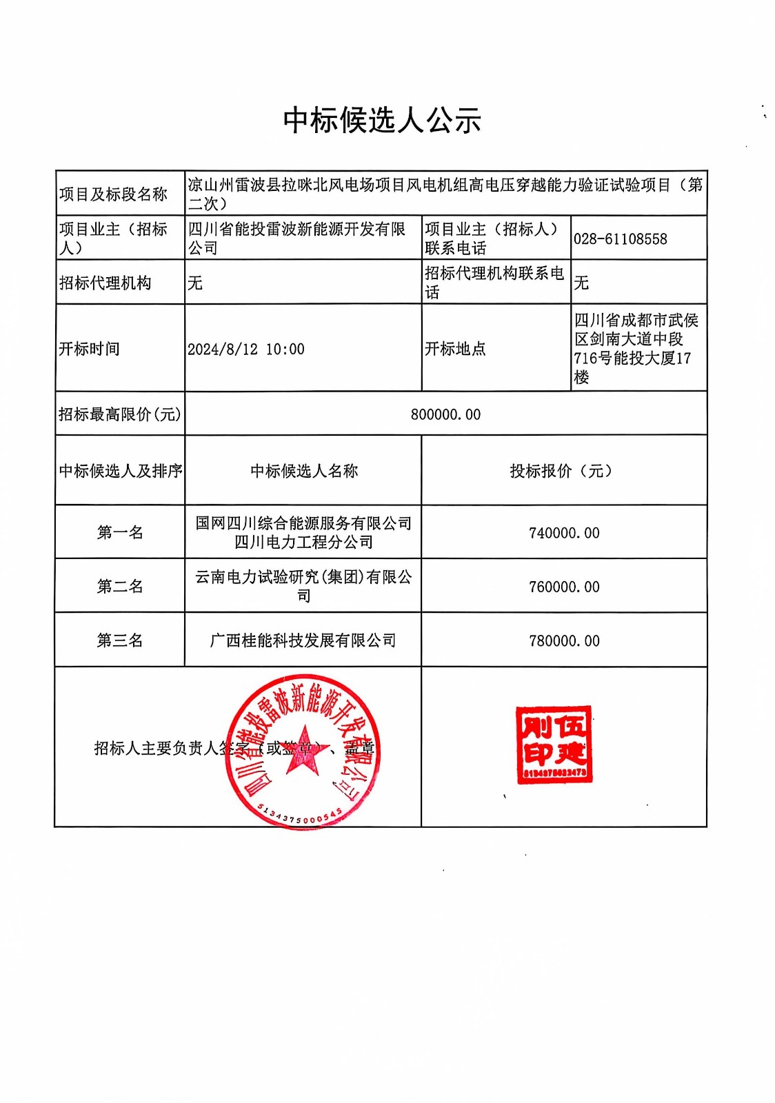 上一条:四川能投美姑风电开发有限公司2024年度物业服务中标候选人公示