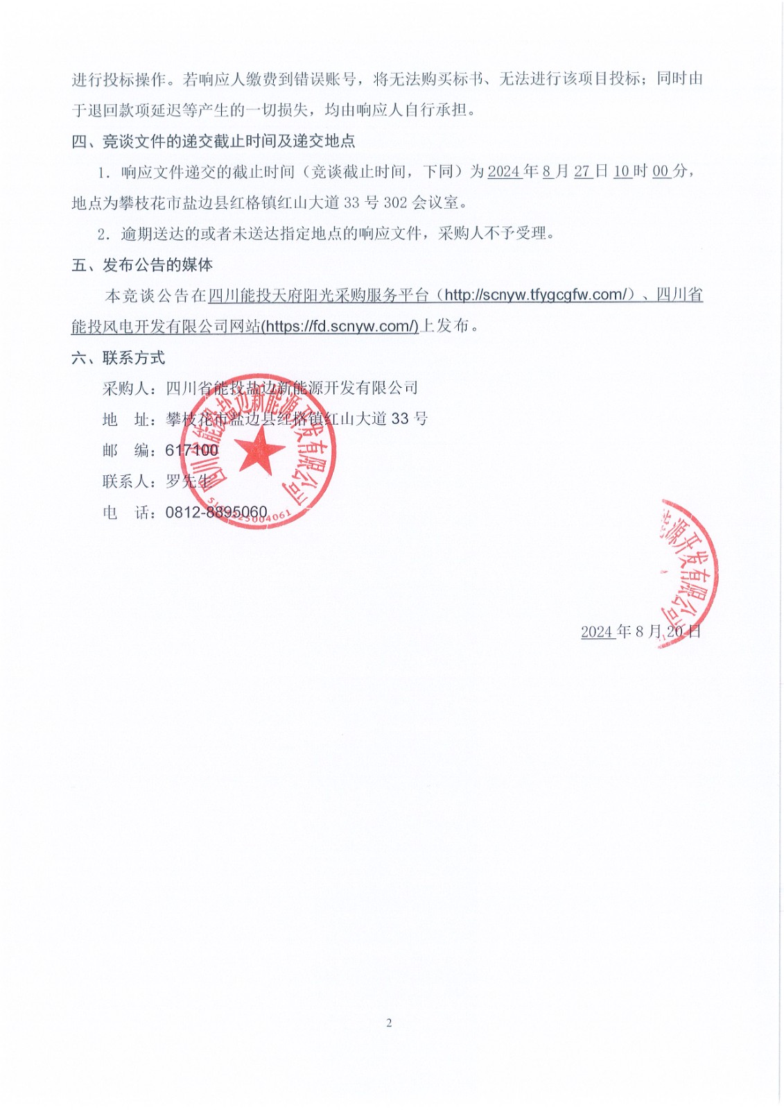 采购人:四川省能投盐边新能源开发有限公司