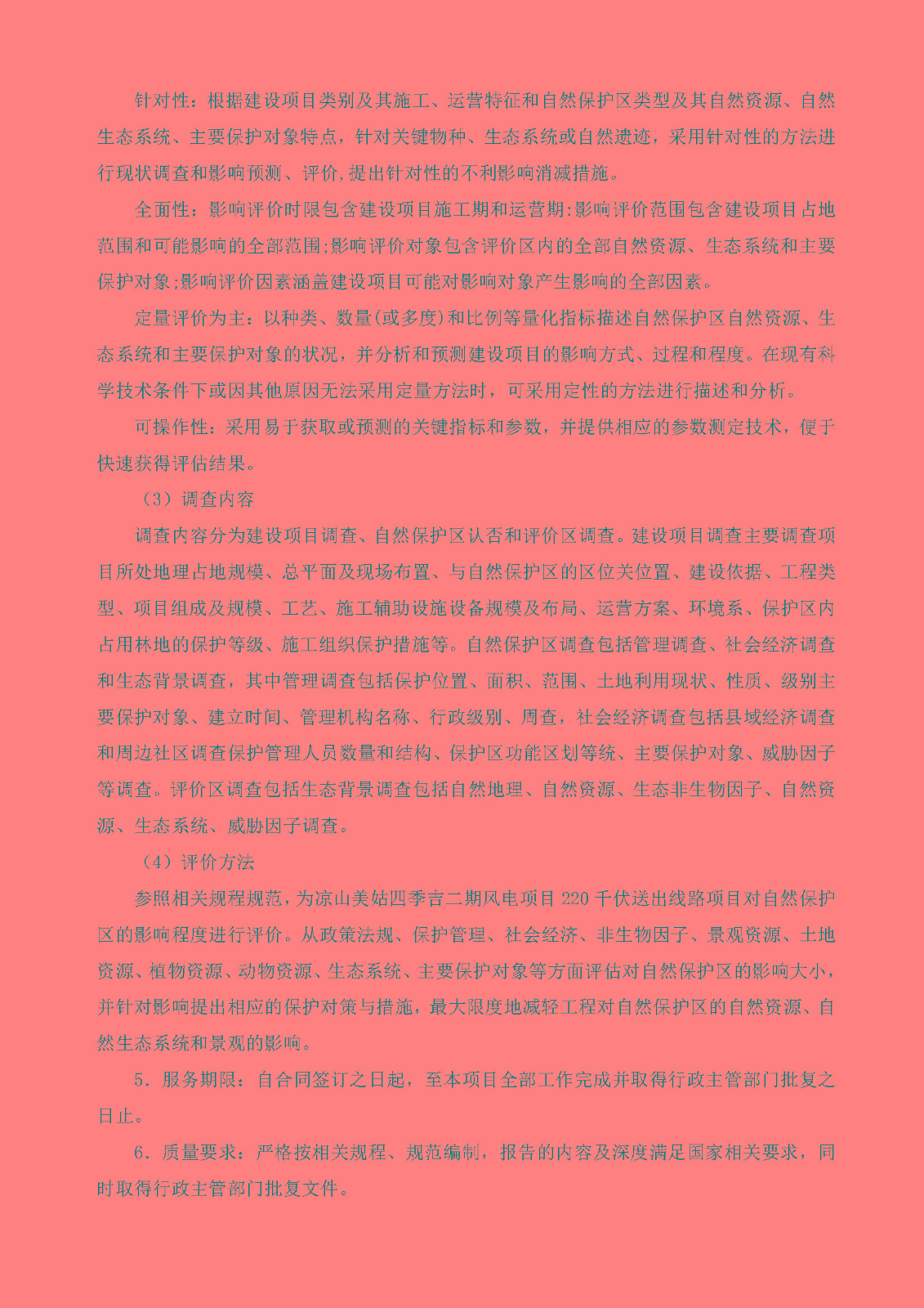 1.项目名称:凉山美姑四季吉二期风电项目220千伏送出线路安全预评价报告编制服务项目。