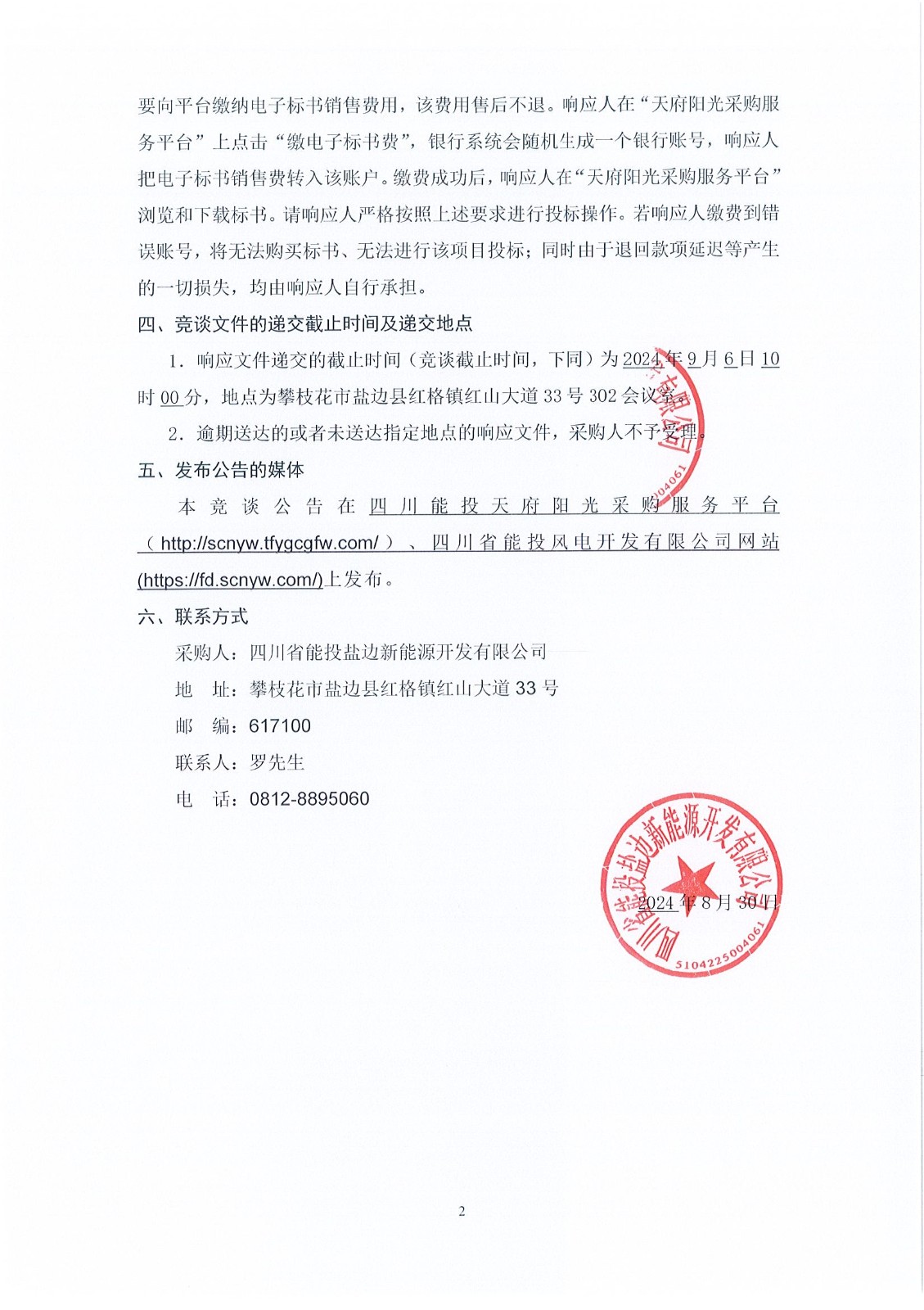 1.响应文件递交的截止时间(竞谈截止时间,下同)为2024年9月6日10时00分,地点为攀枝花市盐边县红格镇红山大道33号302会议室。