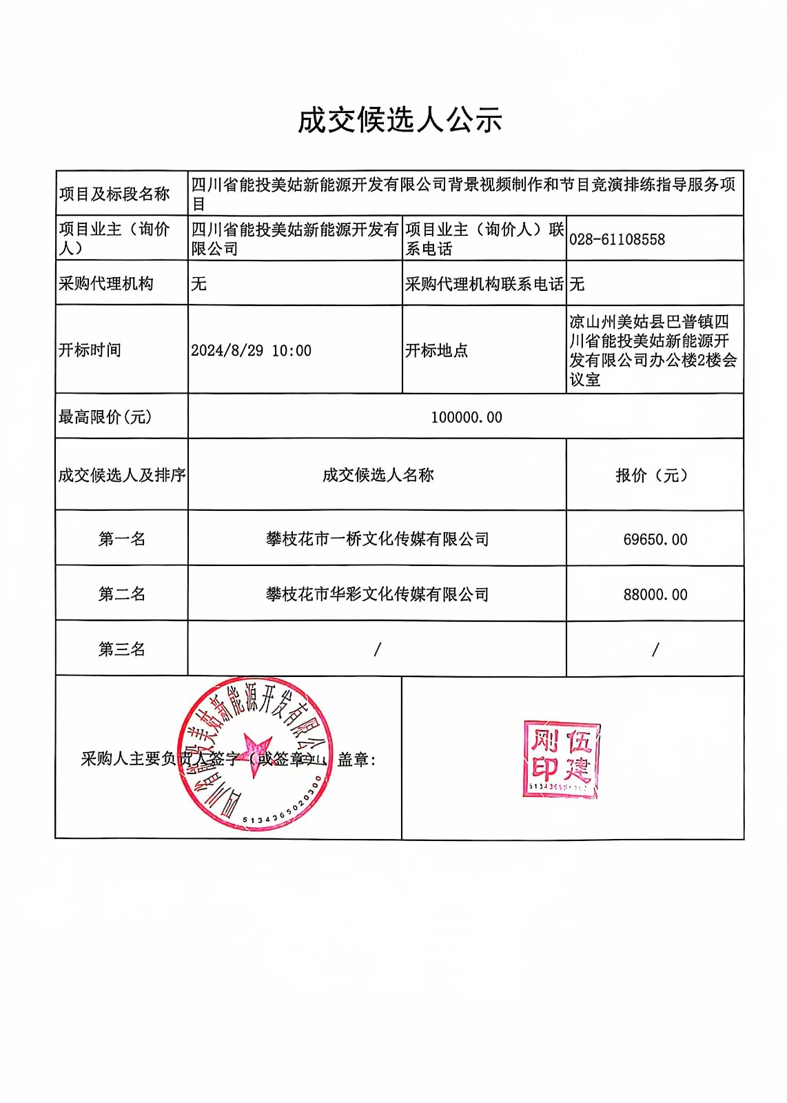 下一条:四川省能投会东新能源开发有限公司关于小街一期和淌塘二期升压站现场值守服务劳务外包项目竞争性谈判公告