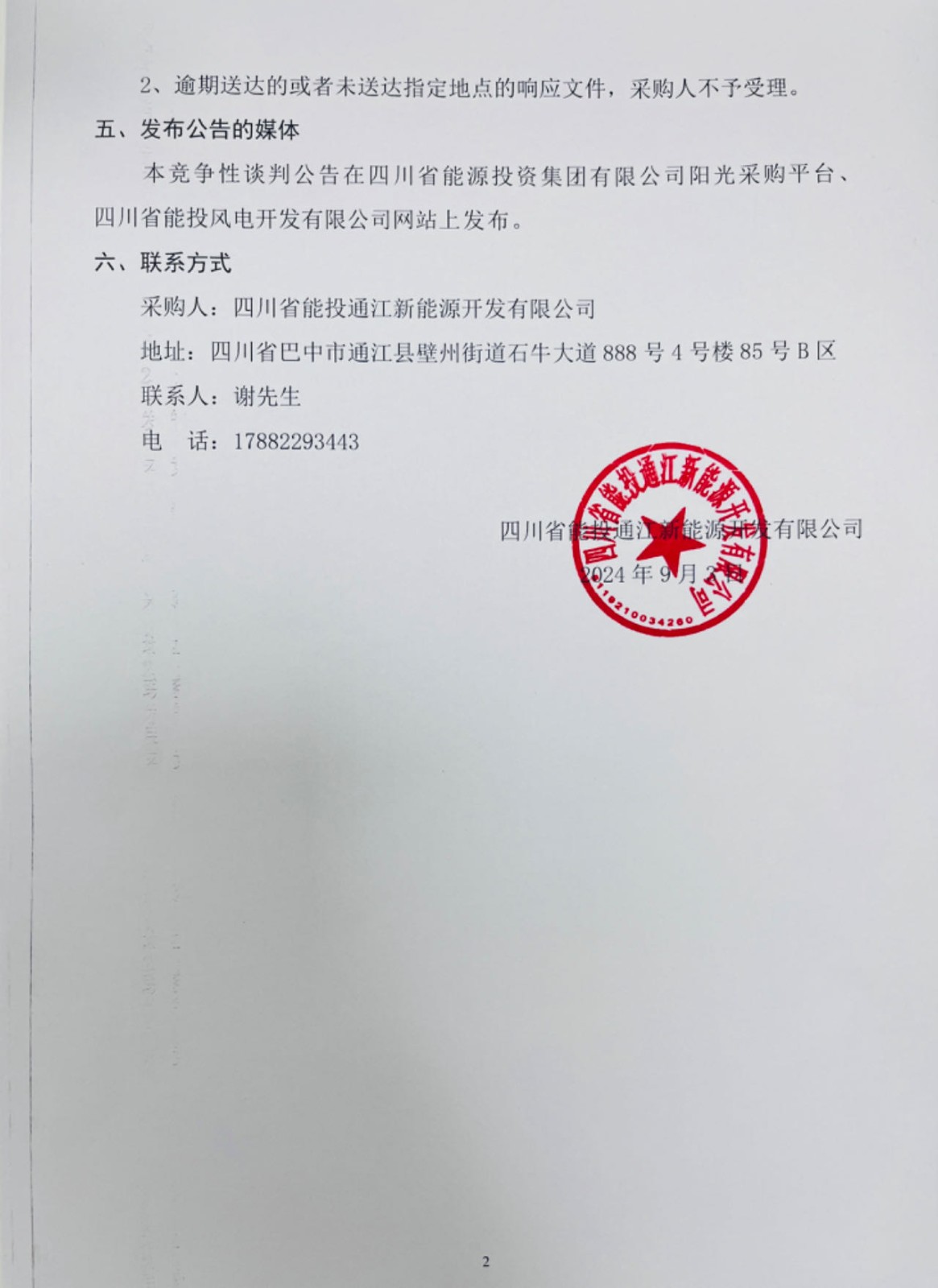采购人:四川省能投通江新能源开发有限公司