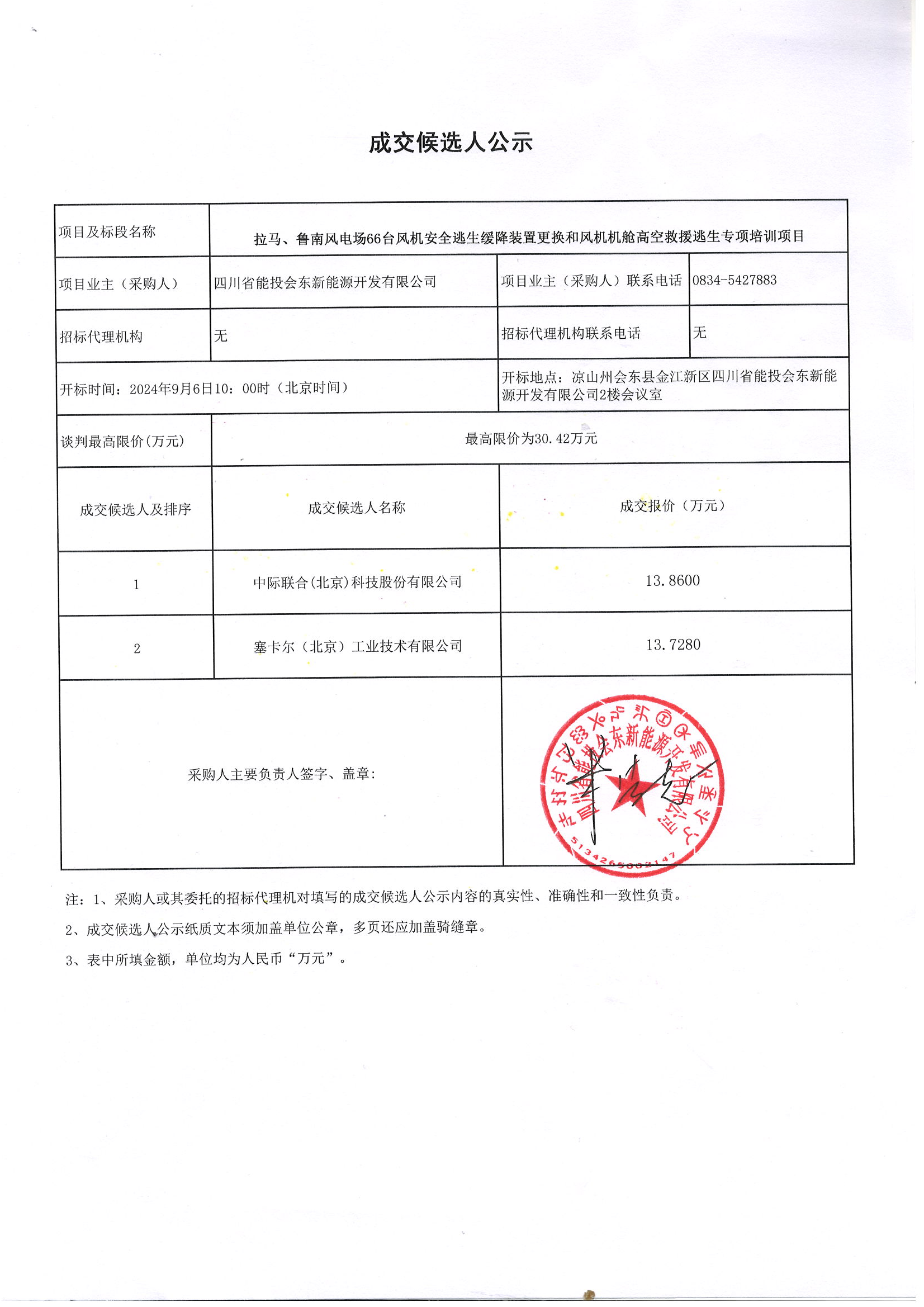 下一条:四川省能投会东新能源开发有限公司关于小街一期和淌塘二期升压站现场值守服务劳务外包项目成交候选人公示