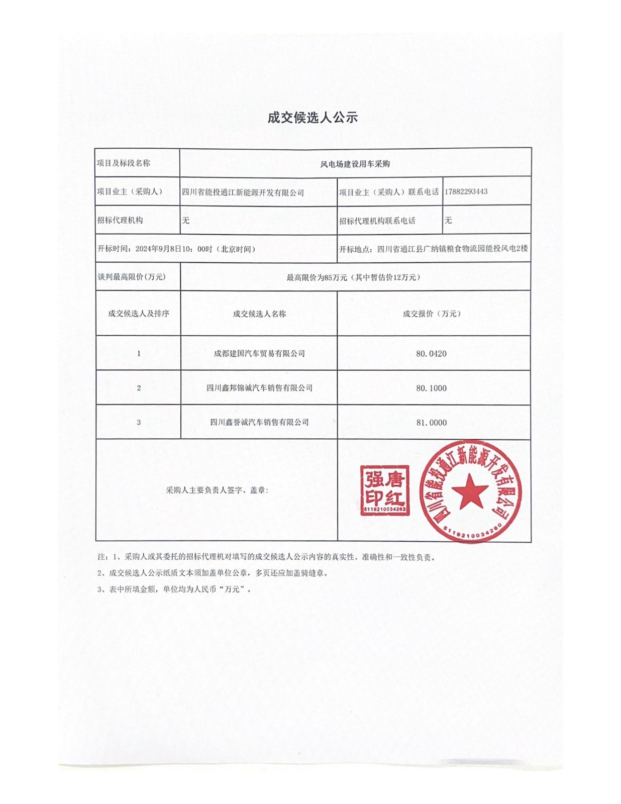 下一条:四川省能投通江新能源开发有限公司关于巴中通江兴隆风电项目220kV送出线路可行性研究报告编制服务项目竞争性谈判公告